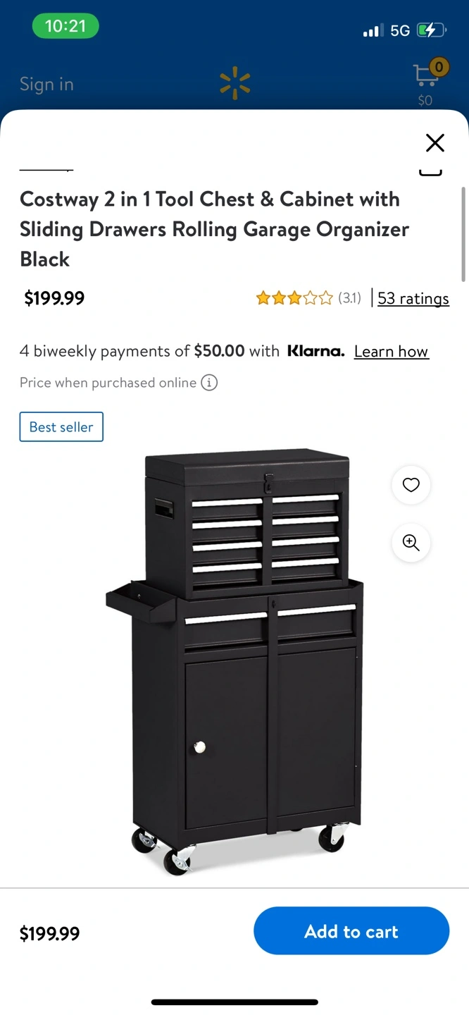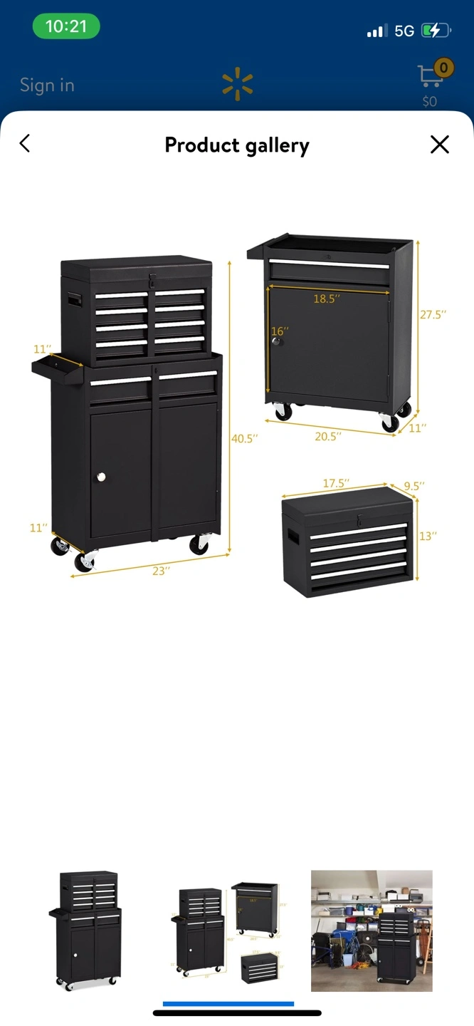 2 in 1 Tool Chest and Cabinet with Sliding Drawers Rolling Garage Organizer Black
