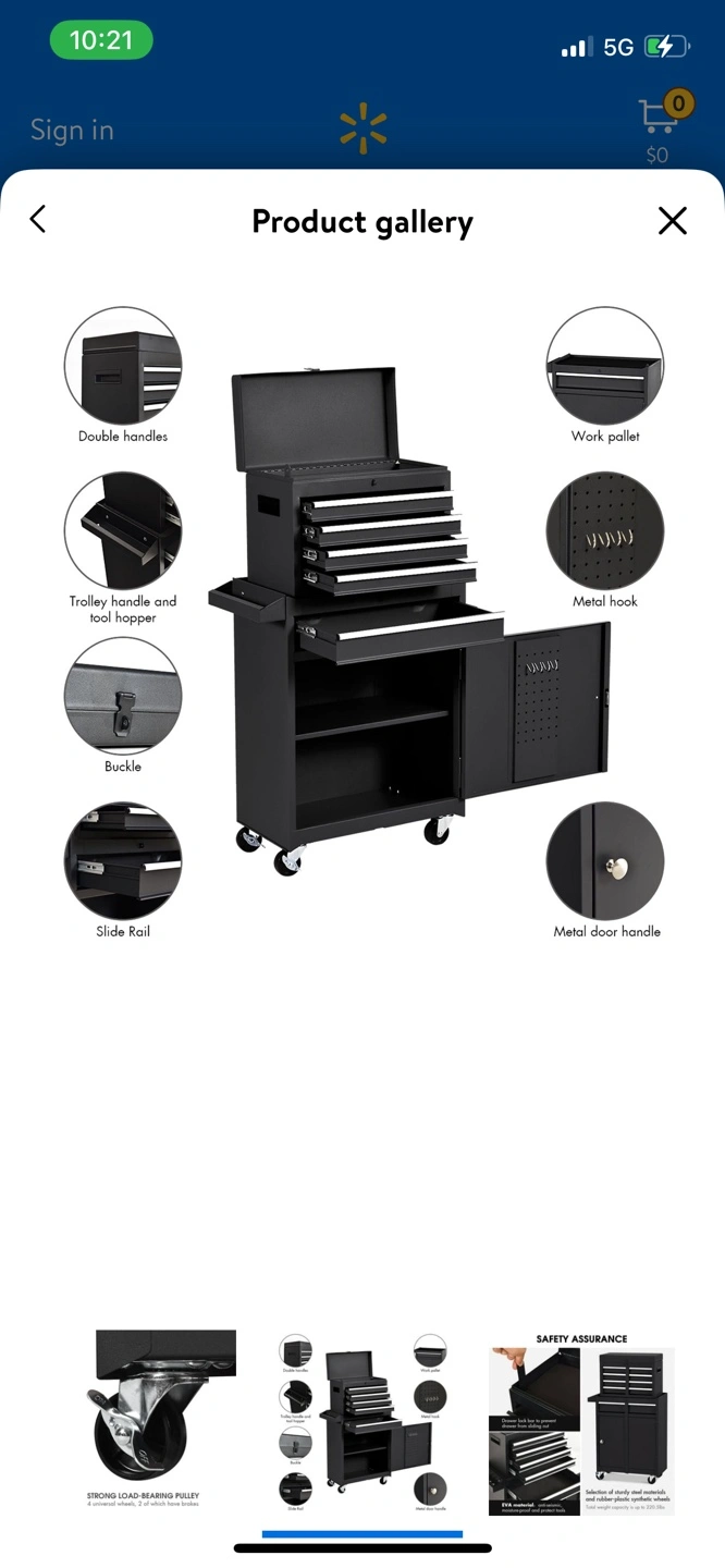 Tool storage 2 in 1 Chest and Cabinet with Sliding Drawers