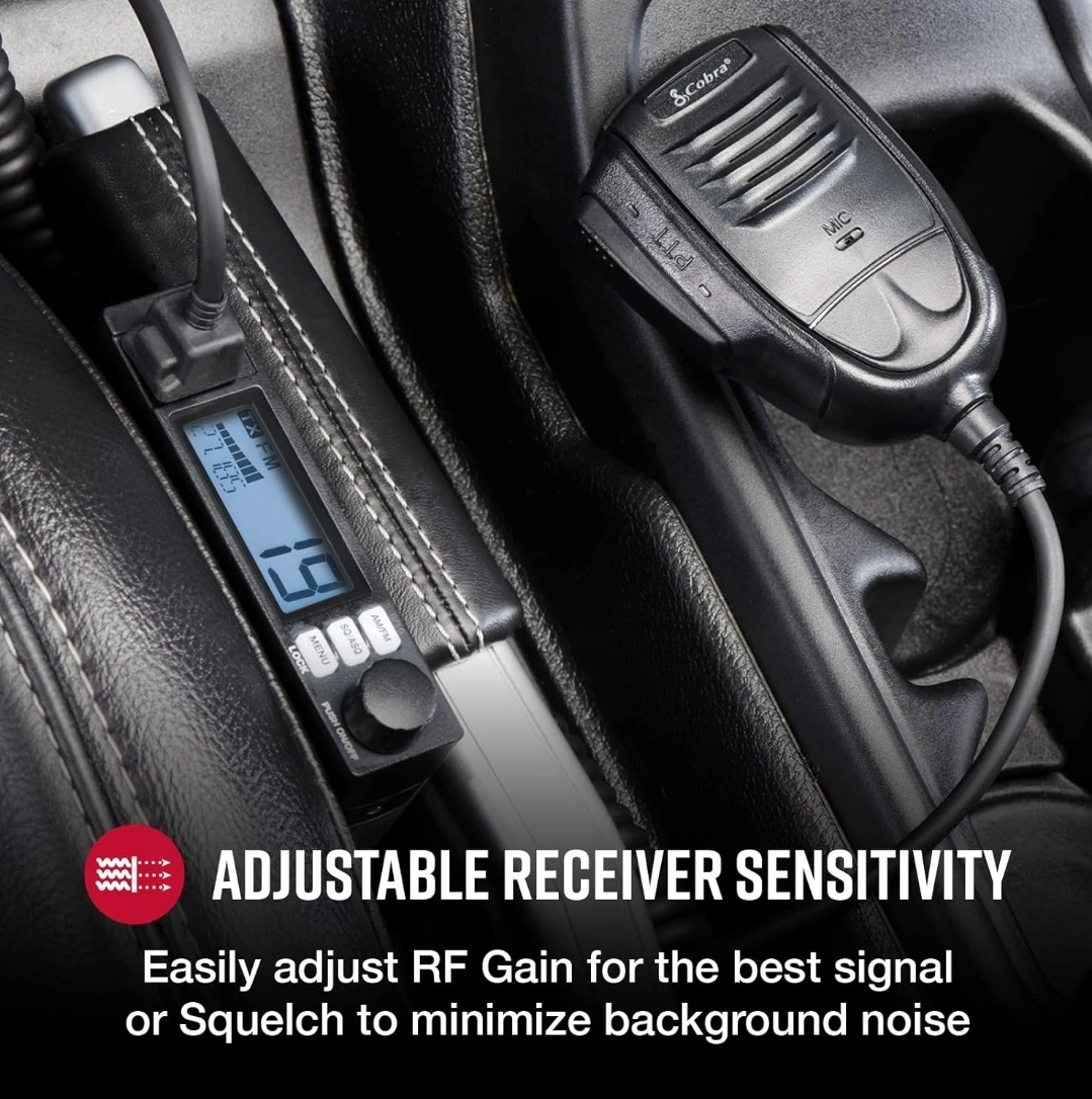 Cobra 19 Mini Recreational CB Radio - 40 Channels, Travel Essentials, Time Out Timer, VOX, Auto Squelch, Auto Power, Instant Channel 9/19, 4-Watt Output, Easy to Operate, Black