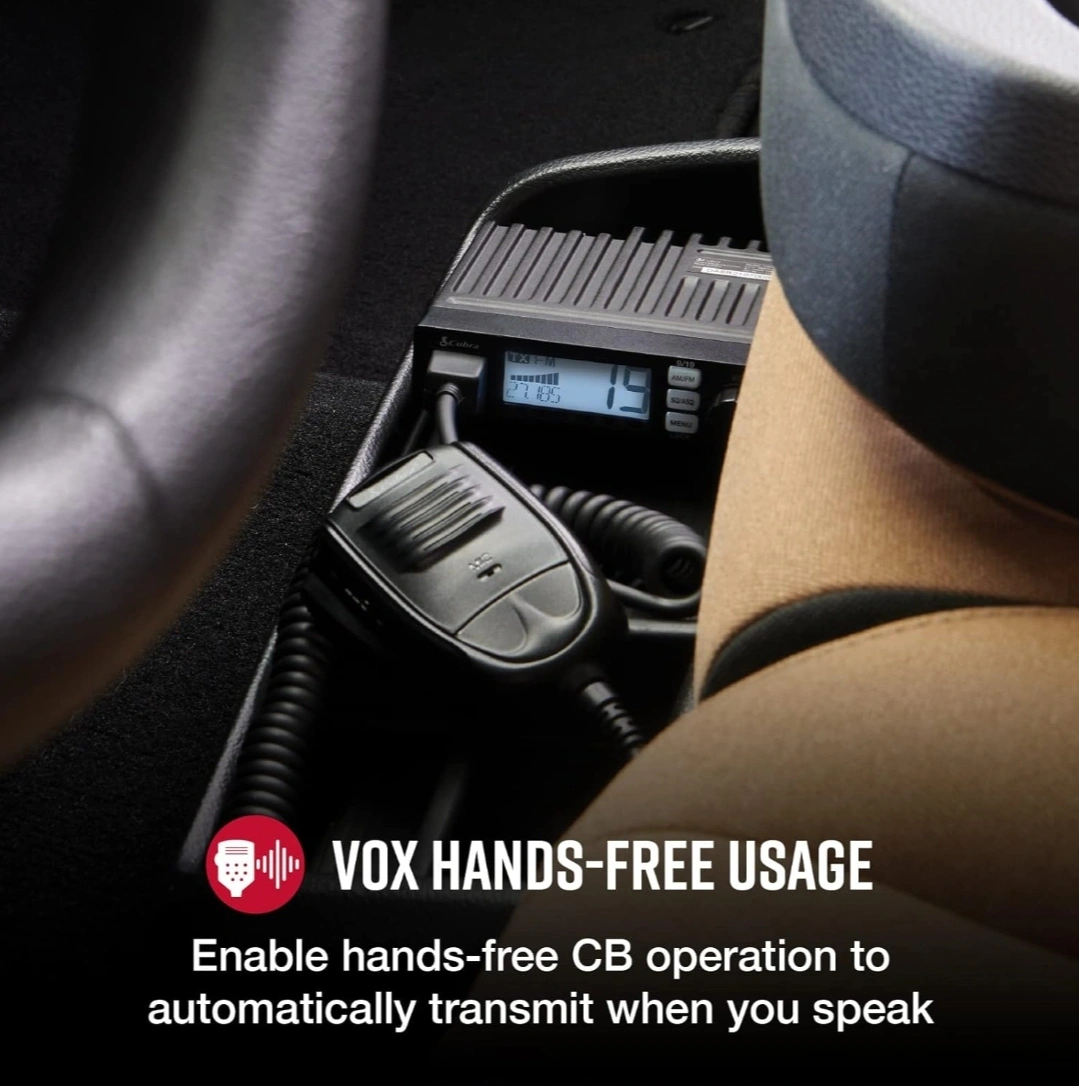 VOX HANDS-FREE USAGE – With the 19 MINI CB Radio you can stay safe on the road and enable the hands-free CB operation to automatically transmit when you speak. This feature will make it so you never have to take your hands of the wheel.