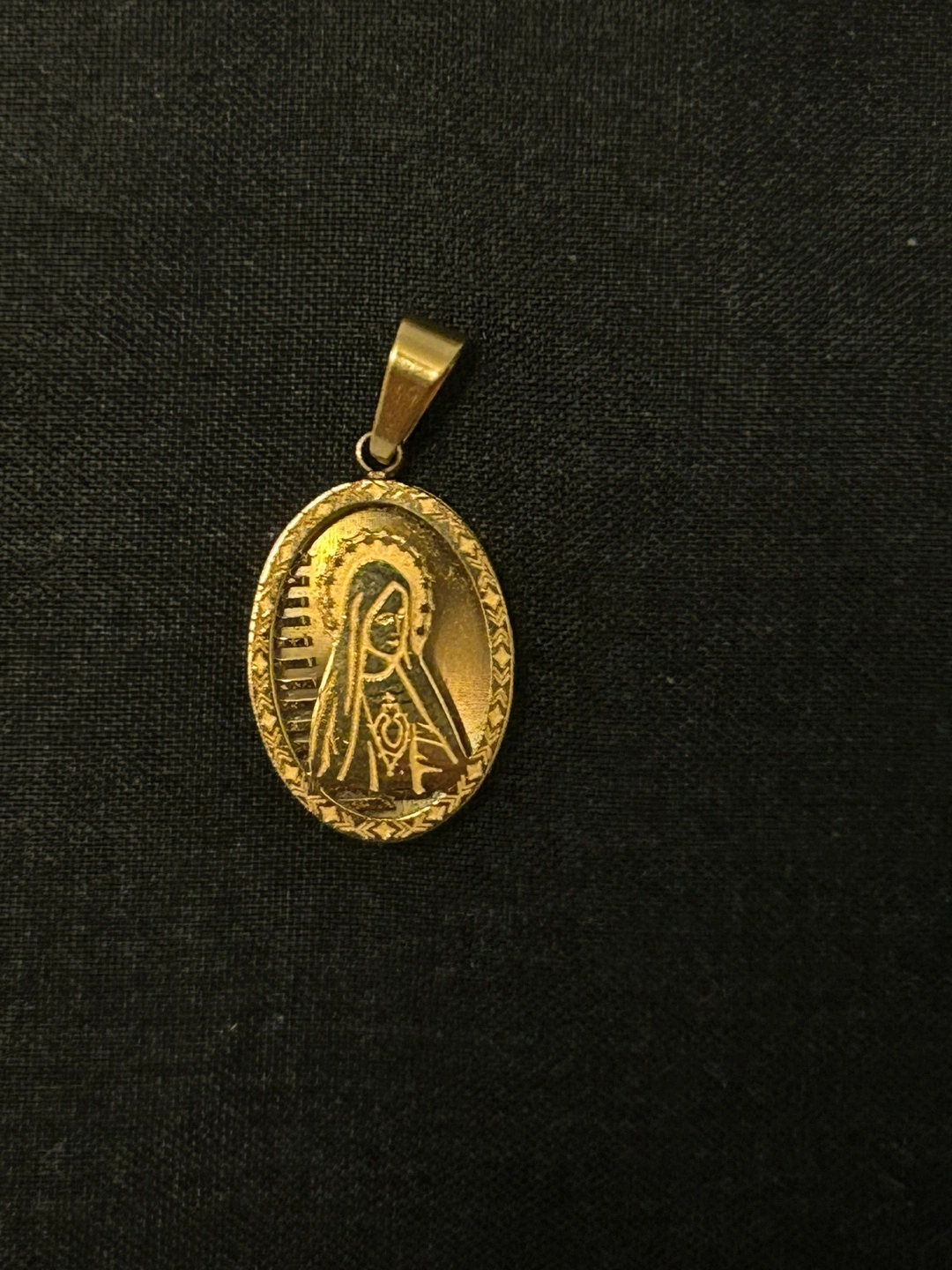126Oval pendant with Virgin Mary image. Gold plated made in Italy.