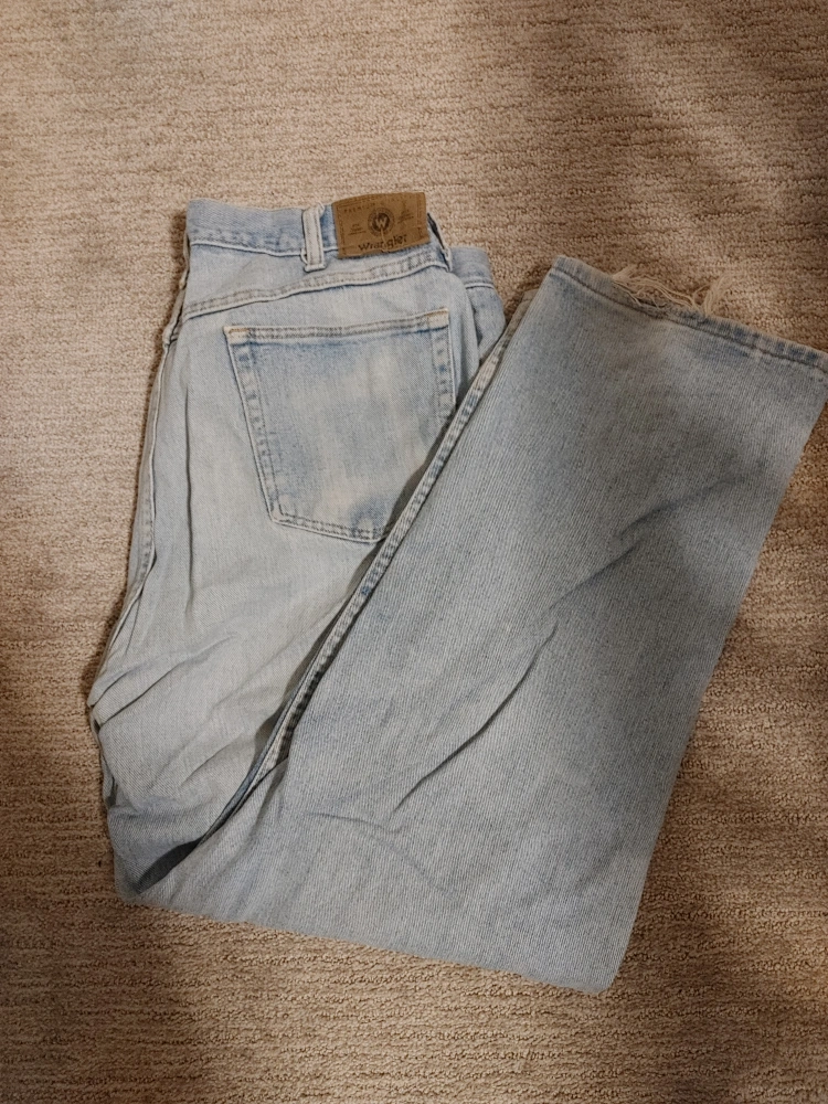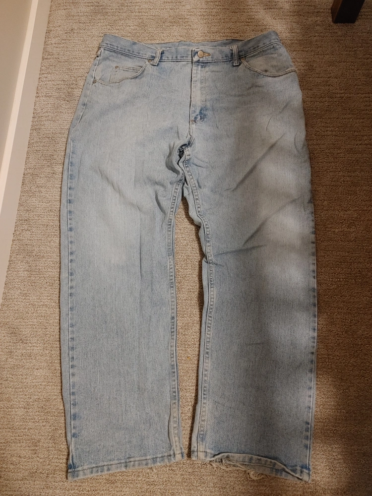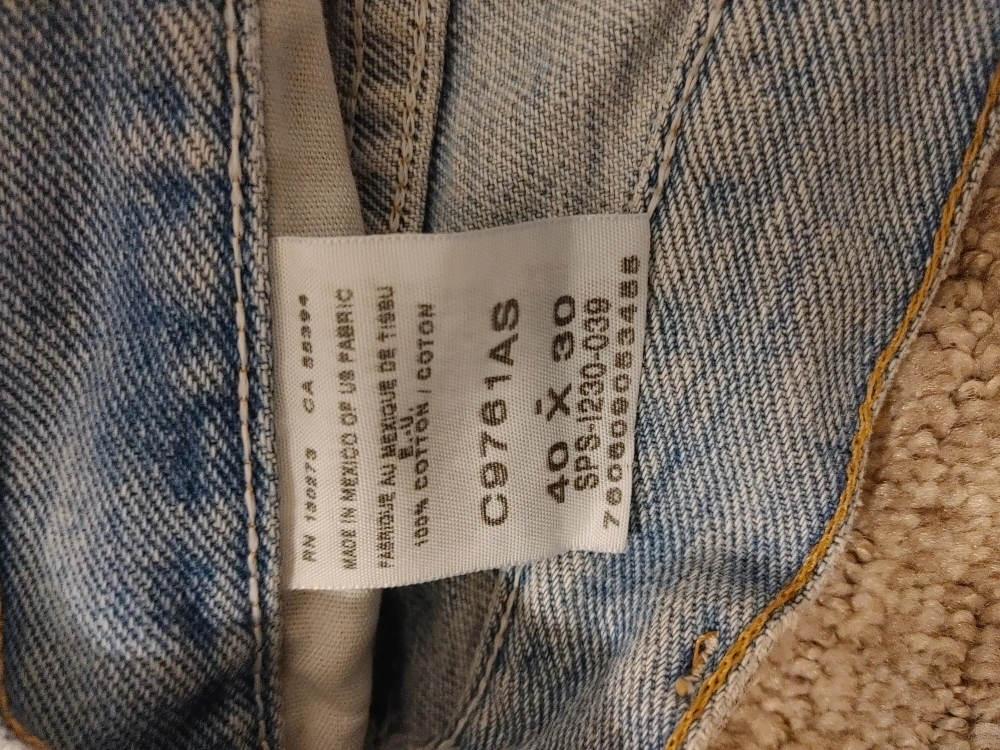 Light blue denim jeans. Straight leg. Made in Mexico of US fabric. 100% cotton.