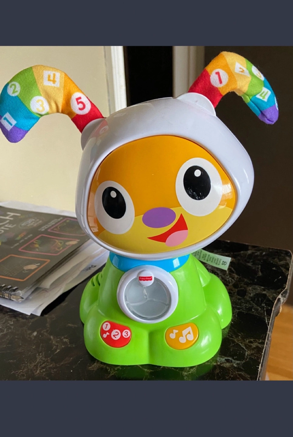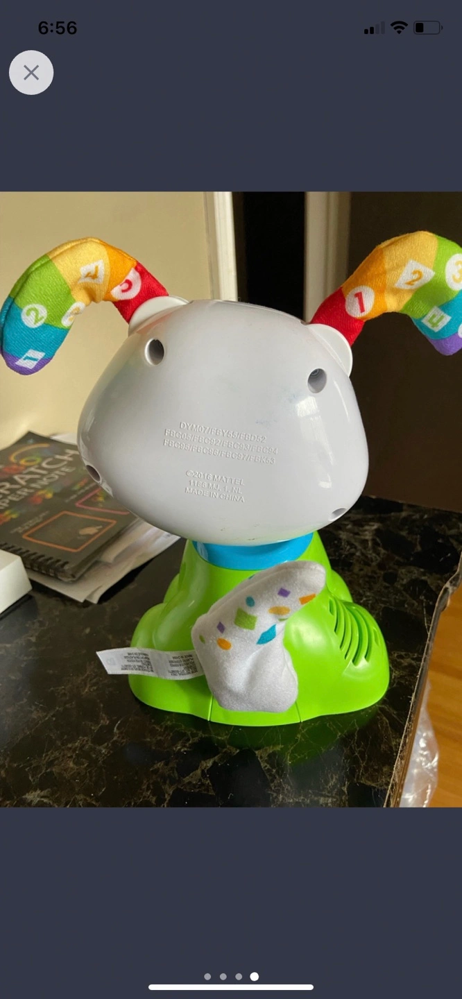 Interactive toy with lights and sounds. Puppy features a light-up face, musical notes, and numbers on its ears.