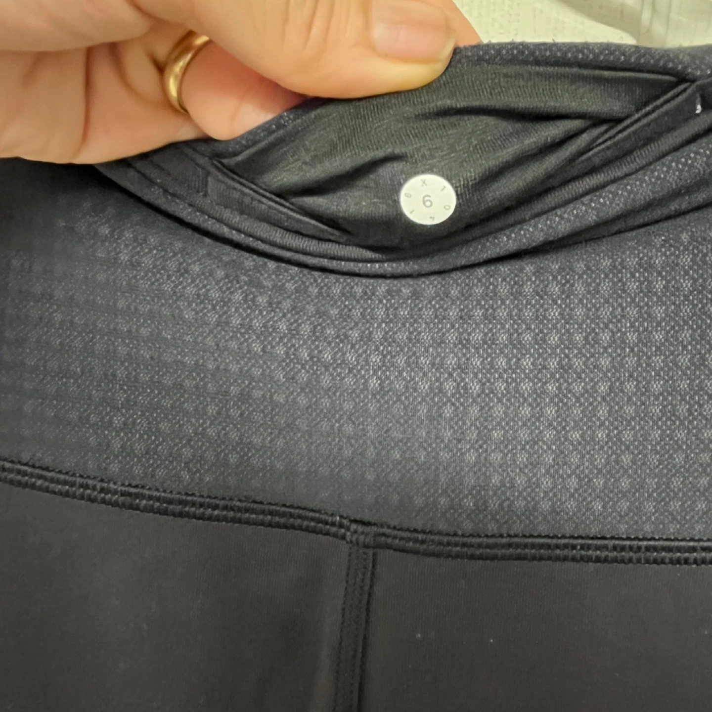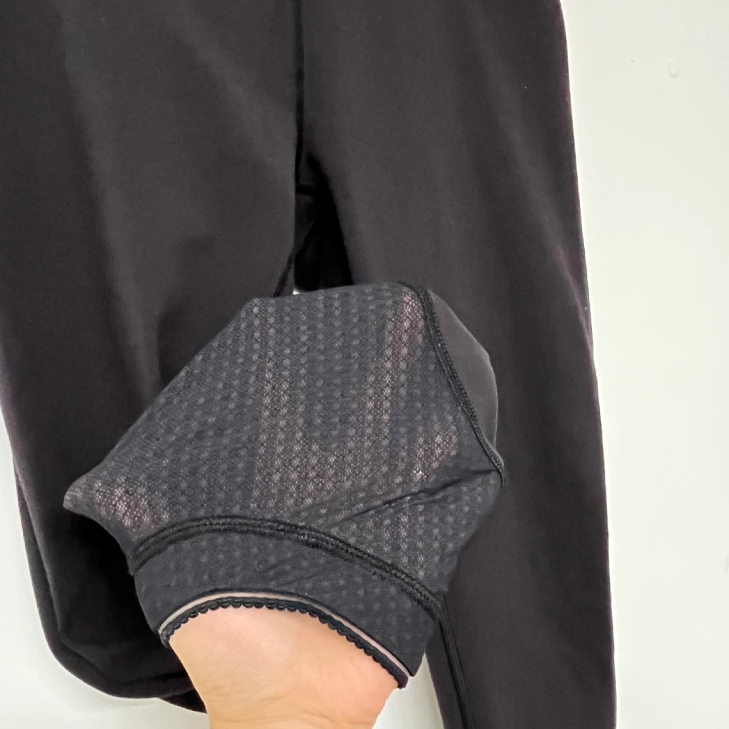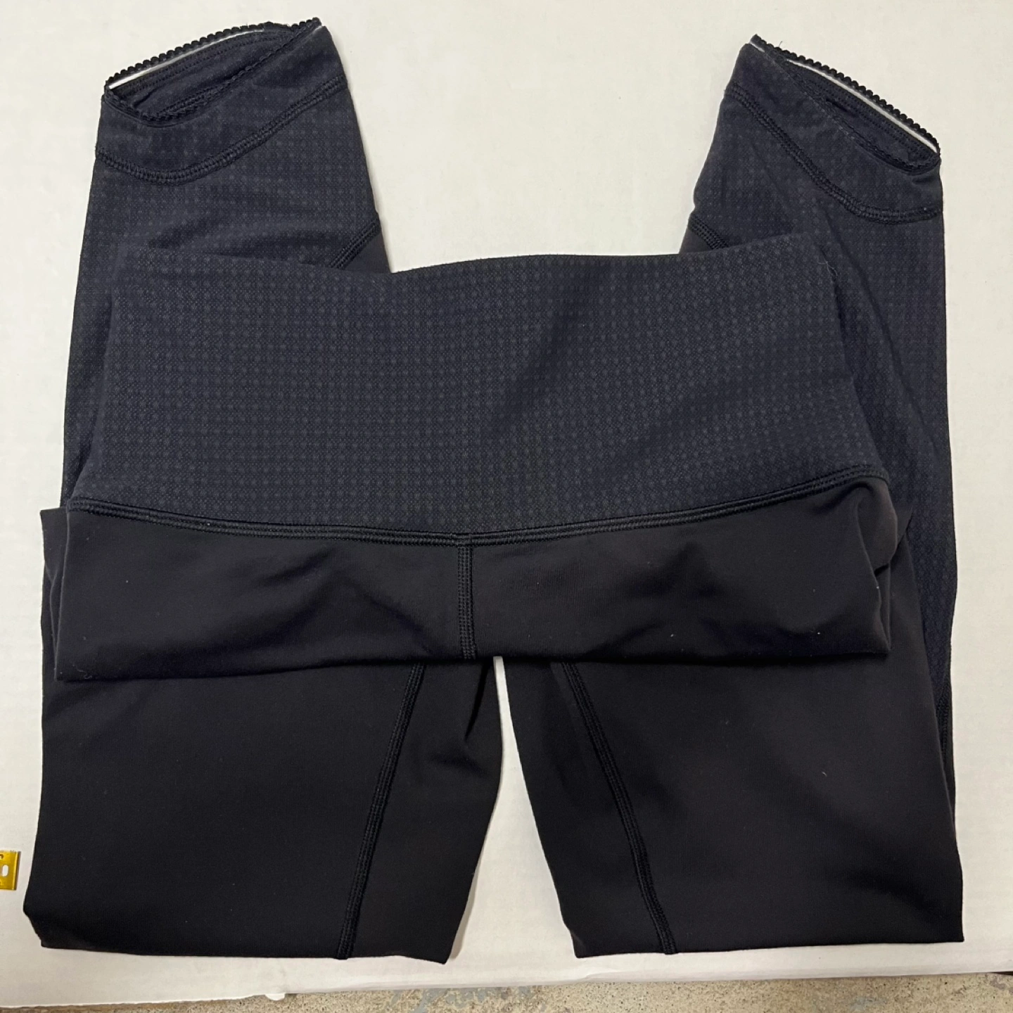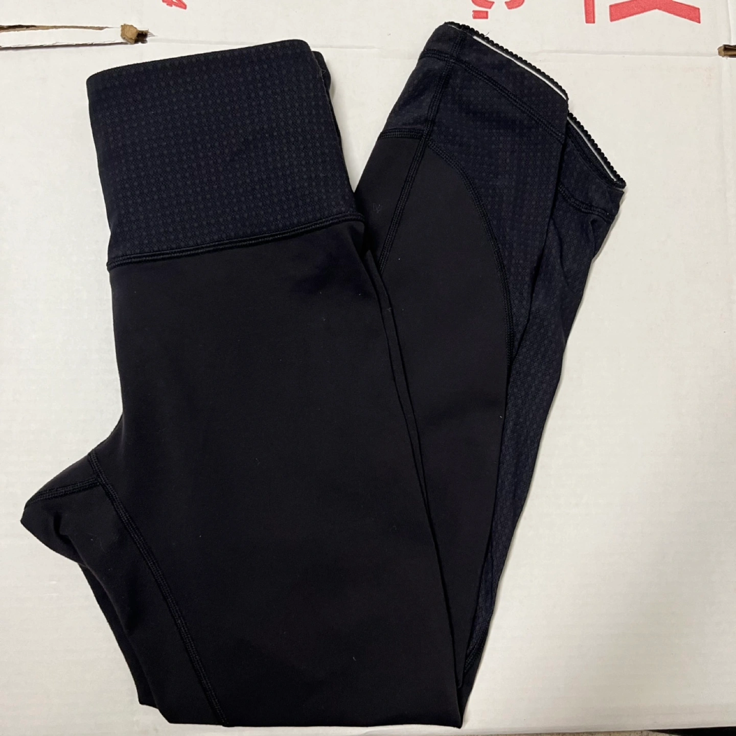 Lululemon mesh side leggings Size 6 black Good used condtion Black Lululemon Align crop pants with a black and white patterned waistband.