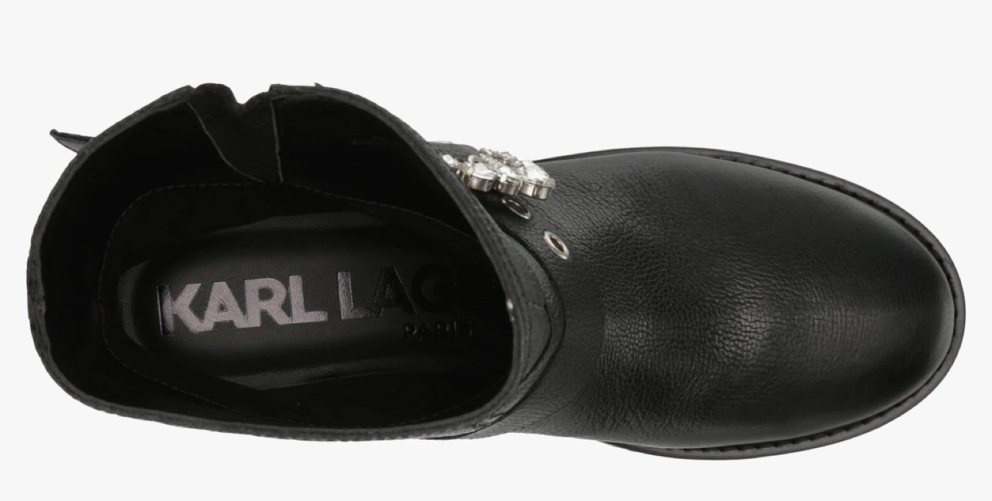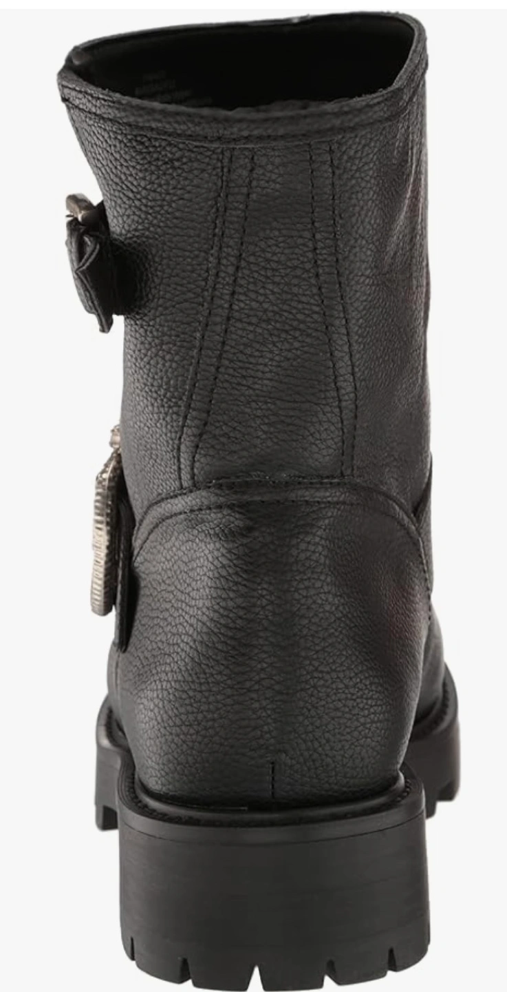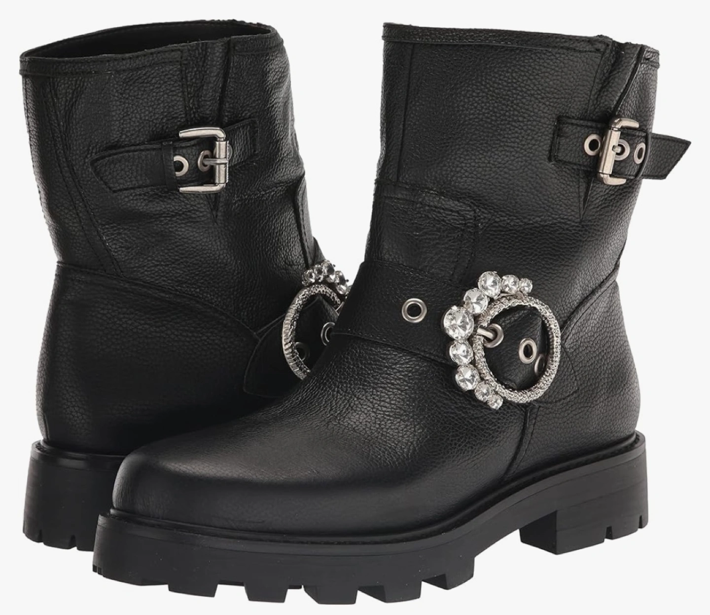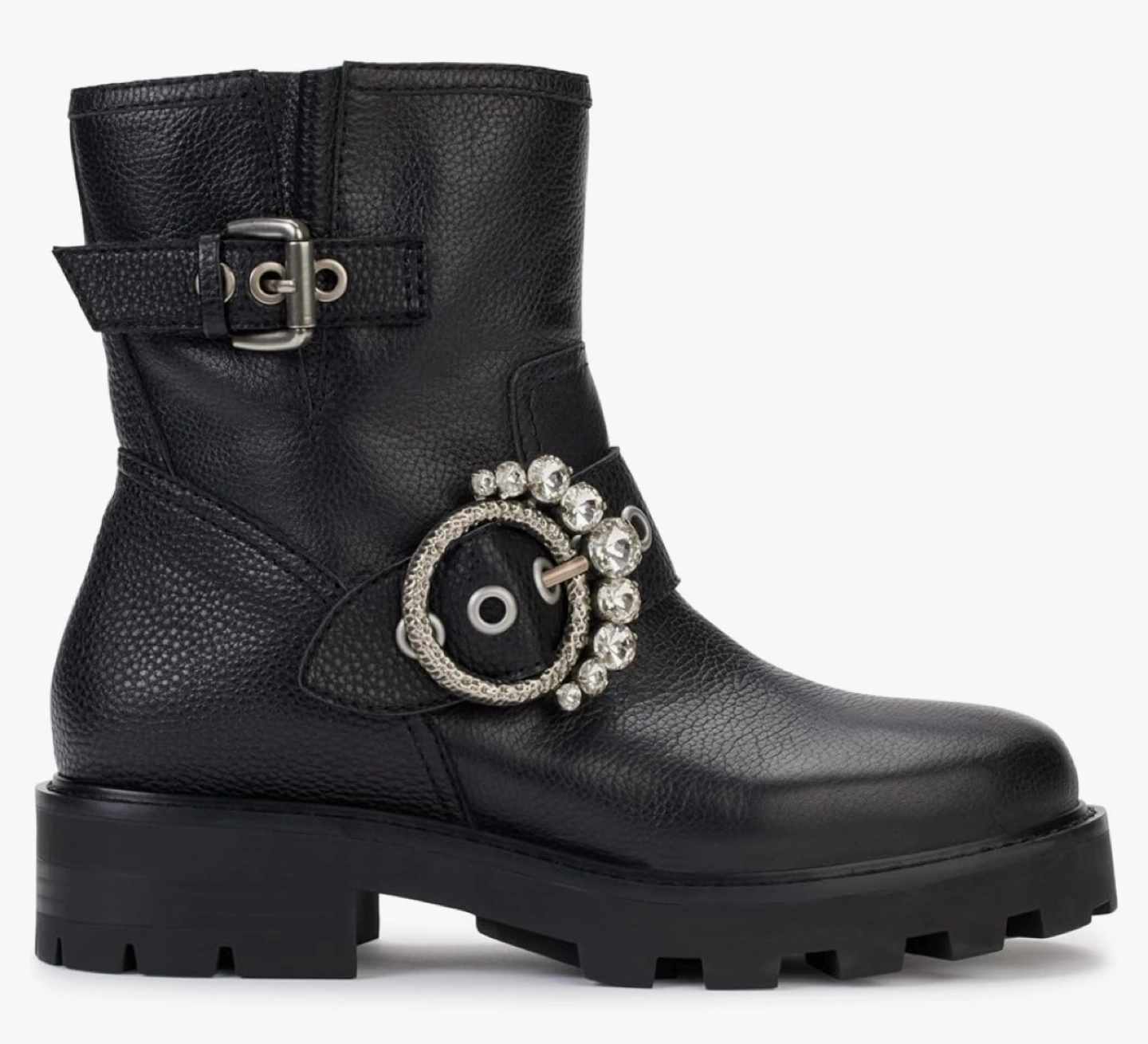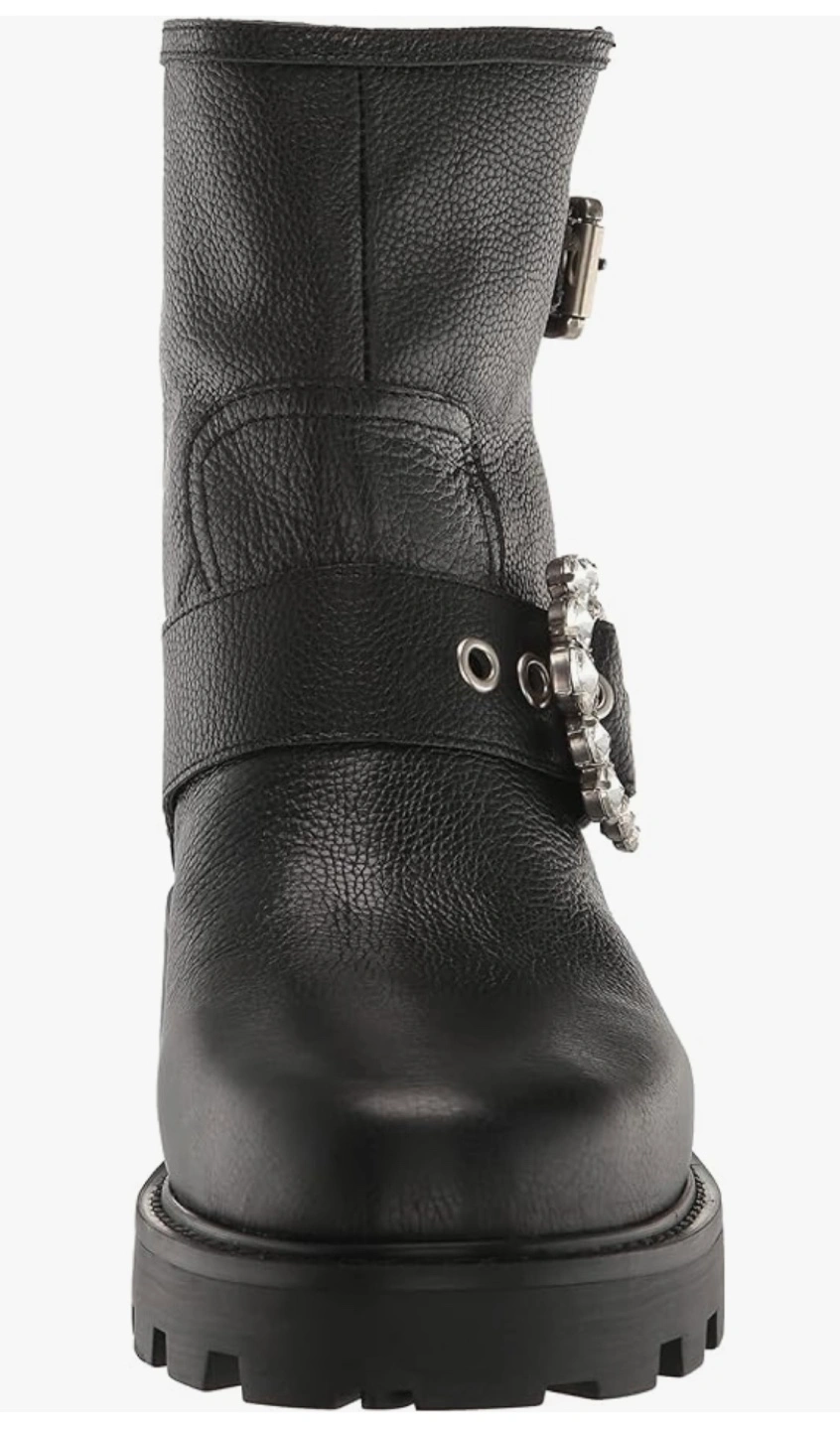 Black leather boots with crystal detailing on the buckle. Size 8.5. New in Box
