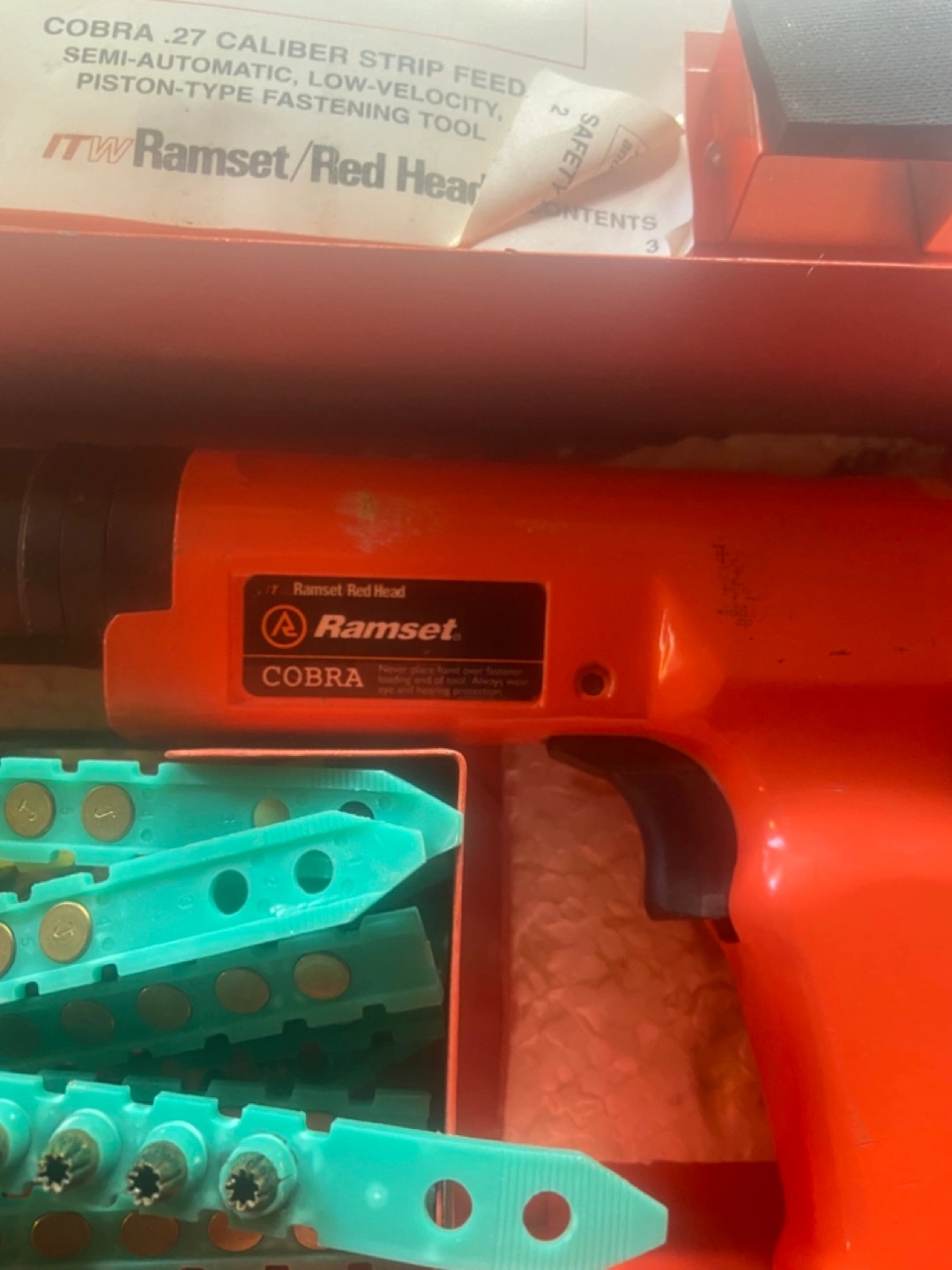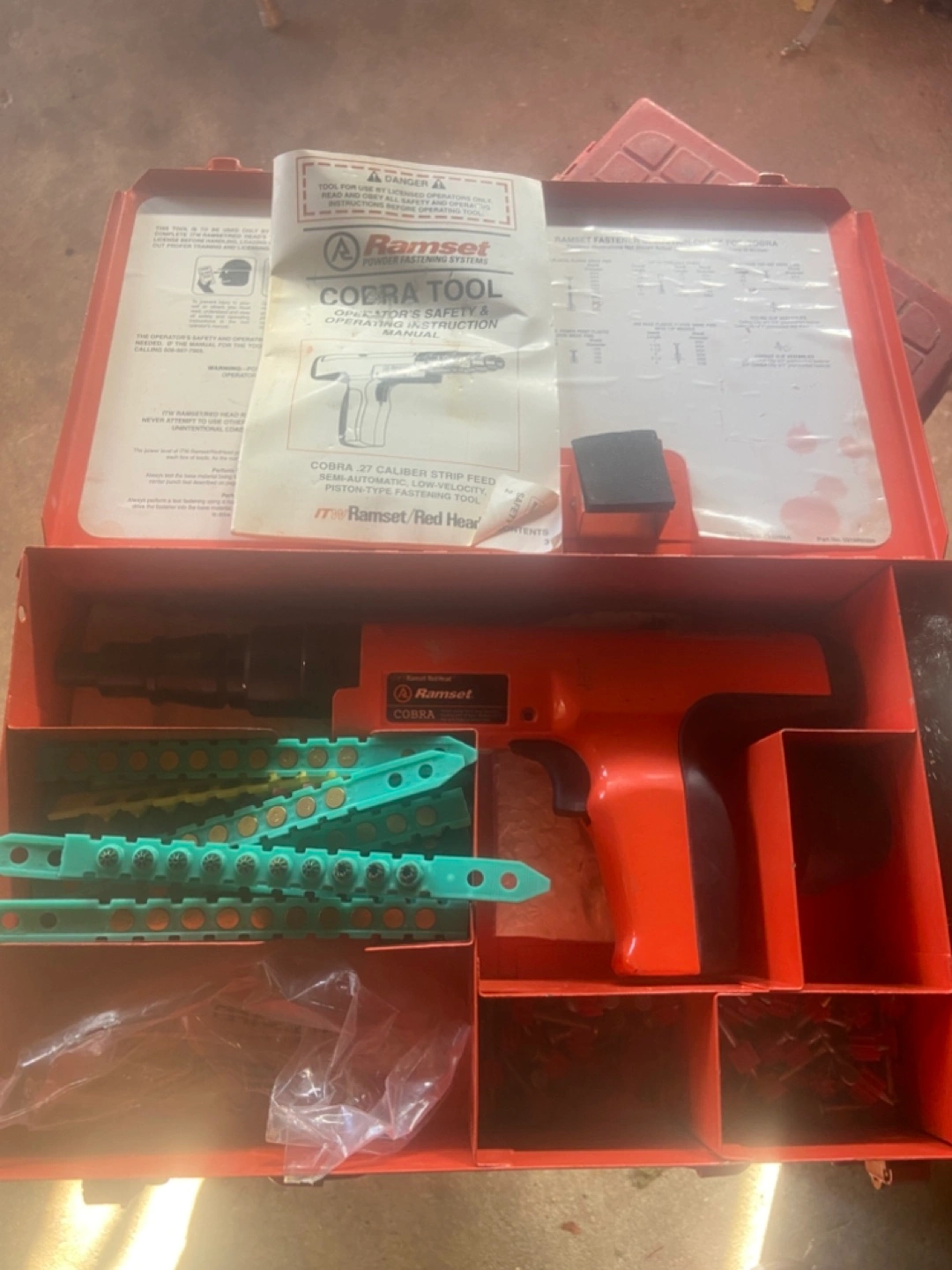 20Semi-automatic low-velocity piston type fastening tool. Includes carrying case and accessories.