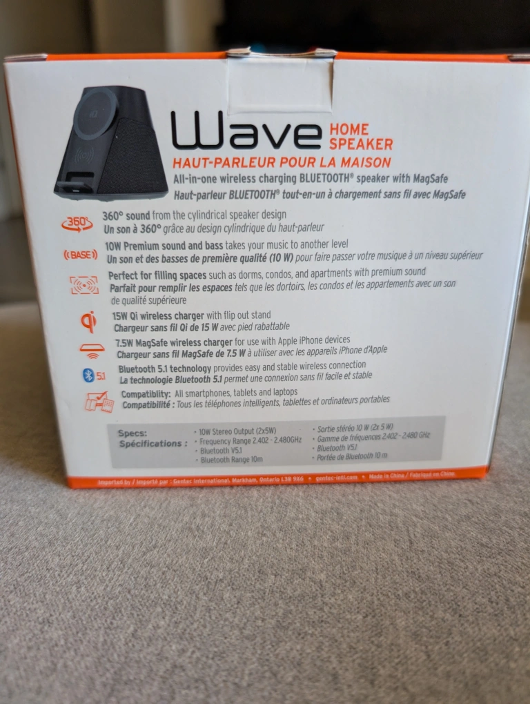 - All-in-one wireless charging Bluetooth speaker with MagSafe. 360 sound from the cylindrical speaker design. 10W Premium sound and bass takes your music to another level.