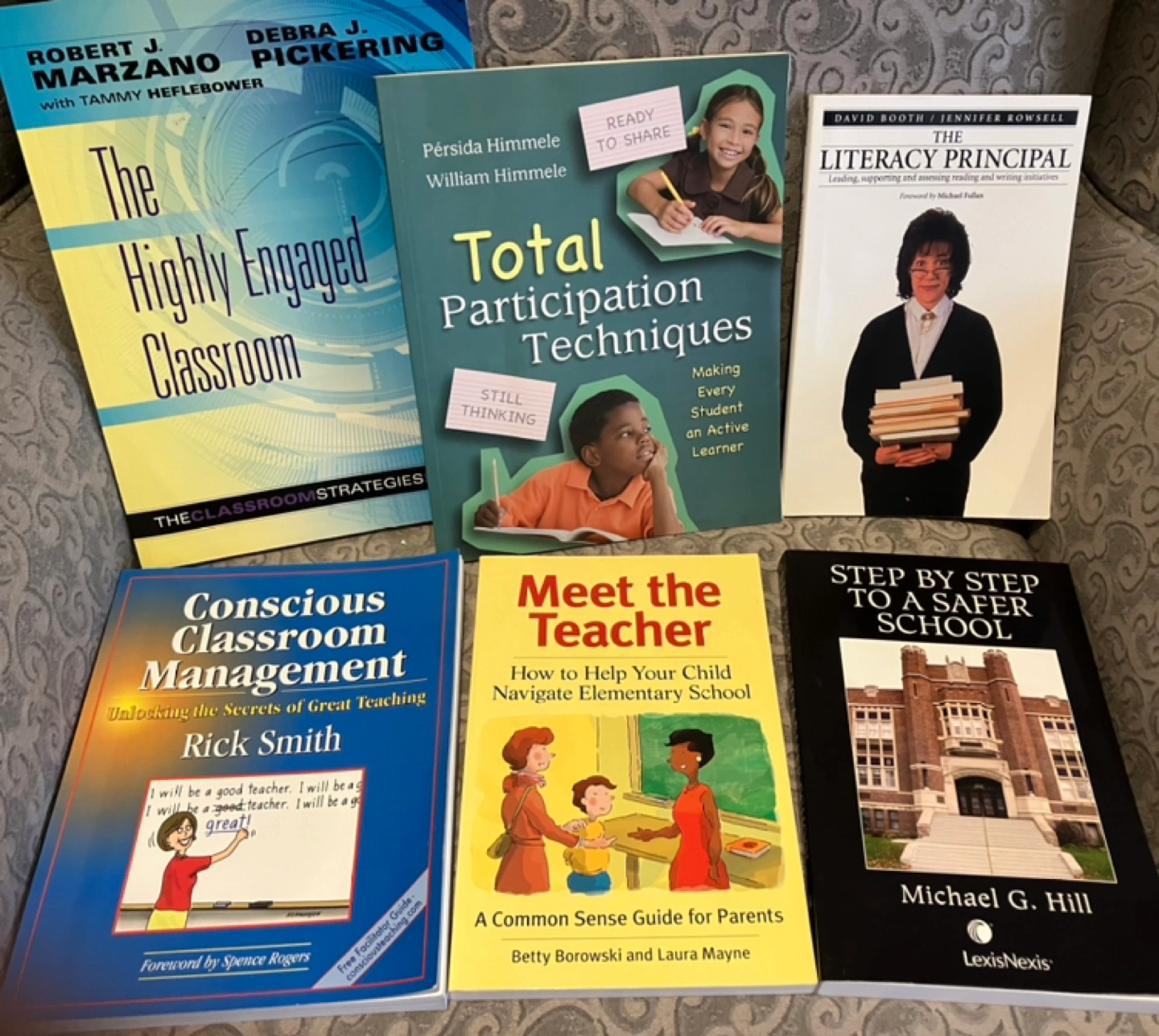 Educational books, good for teachers or parents. Includes The Highly Engaged Classroom, Total Participation Techniques, The Literacy Principal, Conscious Classroom Management, Meet the Teacher and Step by Step to a Safer School.
