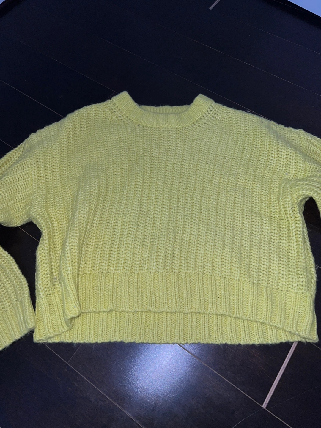 Yellow knitted sweater with long sleeves. Size XS