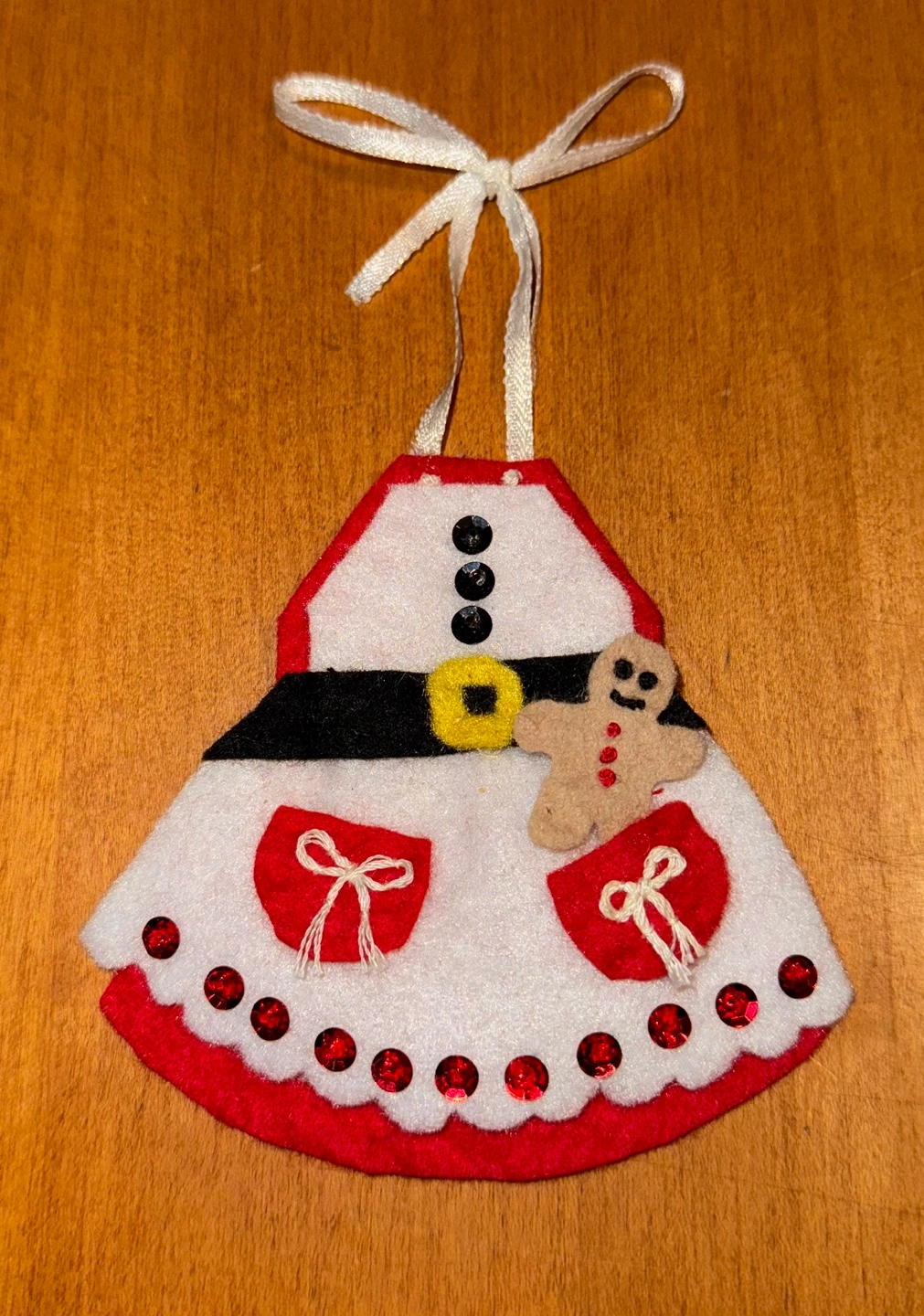 Handmade pin cushion/ornament Christmas apron, felt , new