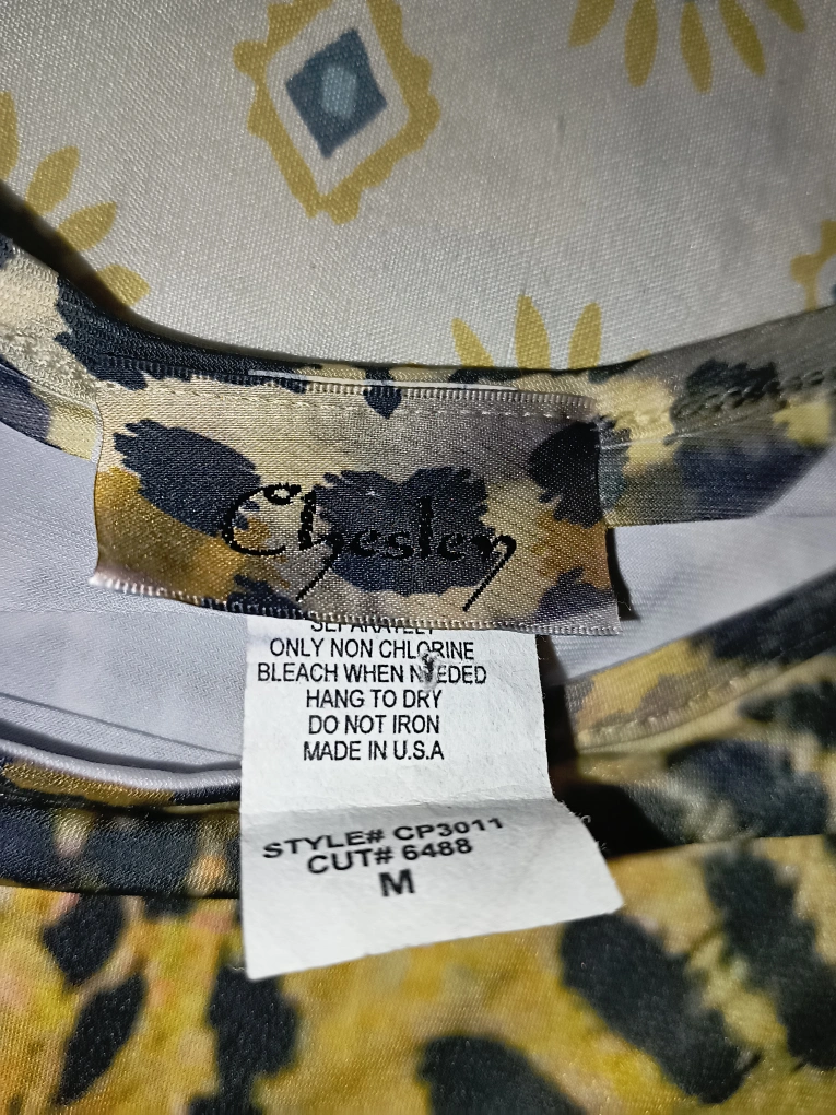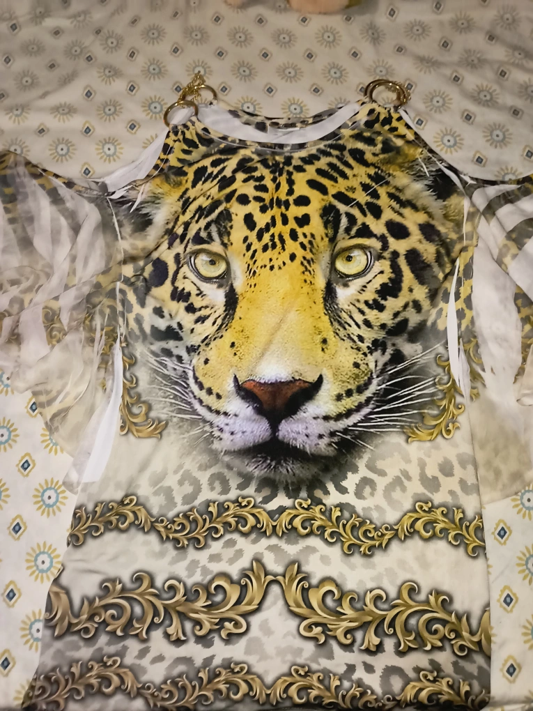 Chesten top, size M, cold shoulder style, animal print, gold detailing.