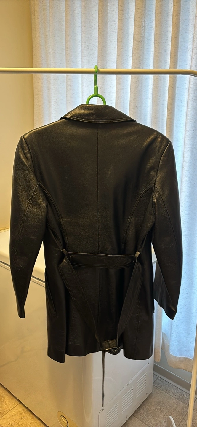 Black leather jacket with a belt. Try ons welcome. Vintage. Size small . Pick up Richmond, or meet occasionally Vancouver and Burnaby