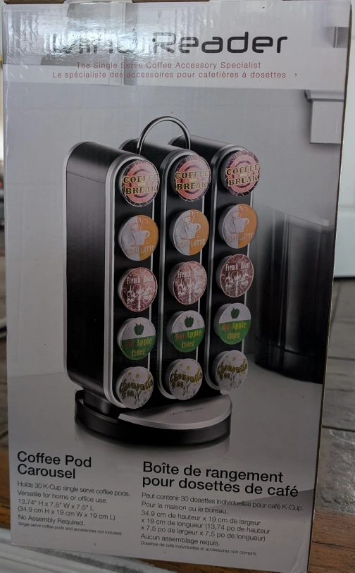 Holds 30 K-Cup single serve coffee pods. Versatile for home or office use. 10.75" H x 7.75" W x 7.5" L (27.31 cm de hauteur x 19.69 cm de largeur x 19 cm de longueur). No assembly required. Includes 30 K-Cup coffee pods.