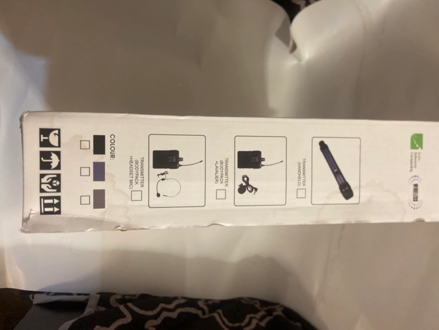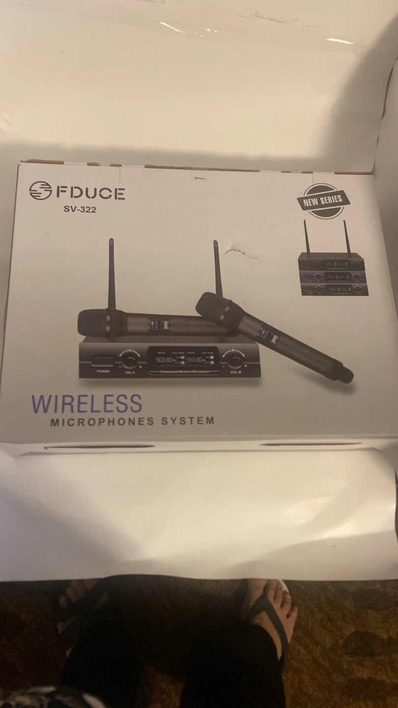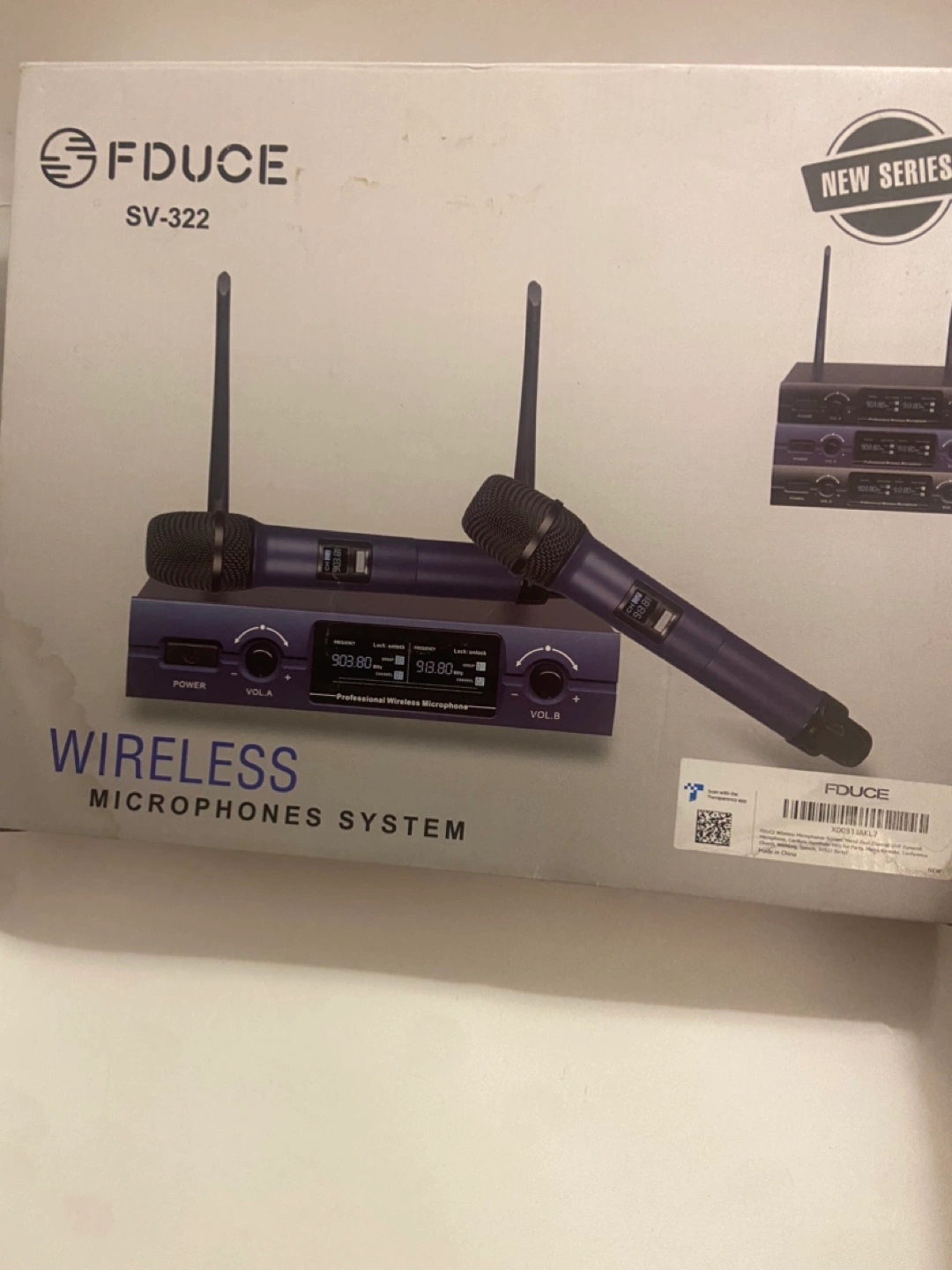 Wireless microphone system with two microphones, receiver, and accessories. New series.