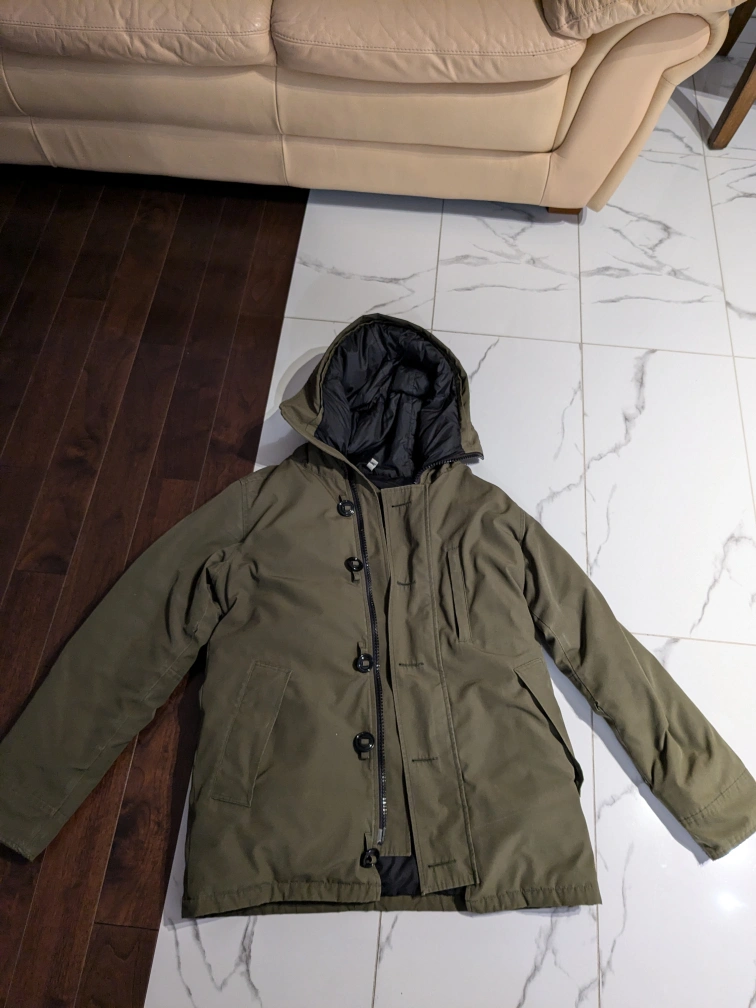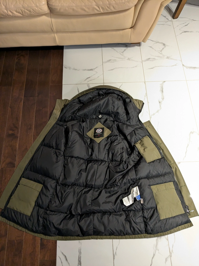 I am selling a used military green Canada Goose jacket. The size is medium and fusion (both men and women).