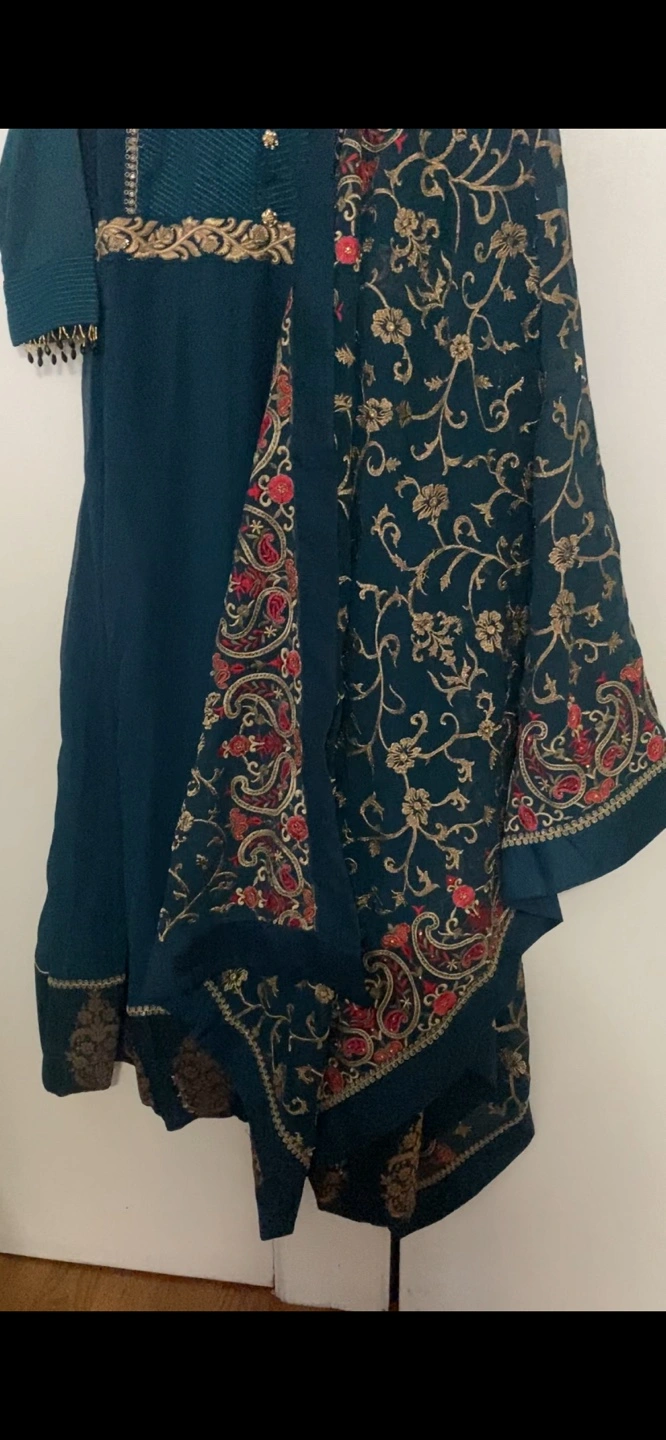 Teal Pakistani Suit with Dupatta,long dress,gawn,party dress