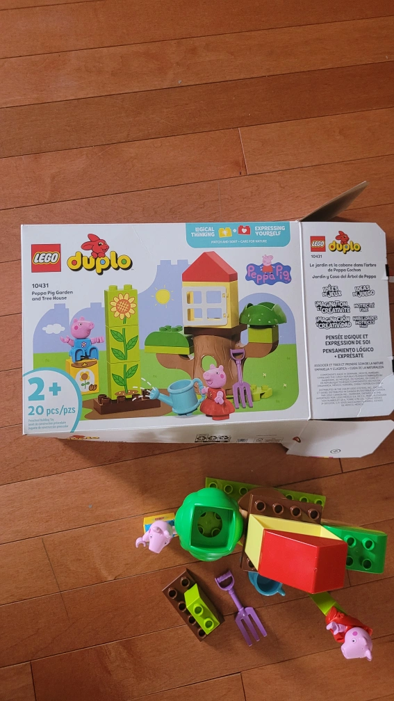 Includes 2 figures, a tree house, a garden with a sunflower, watering can, and a spade.