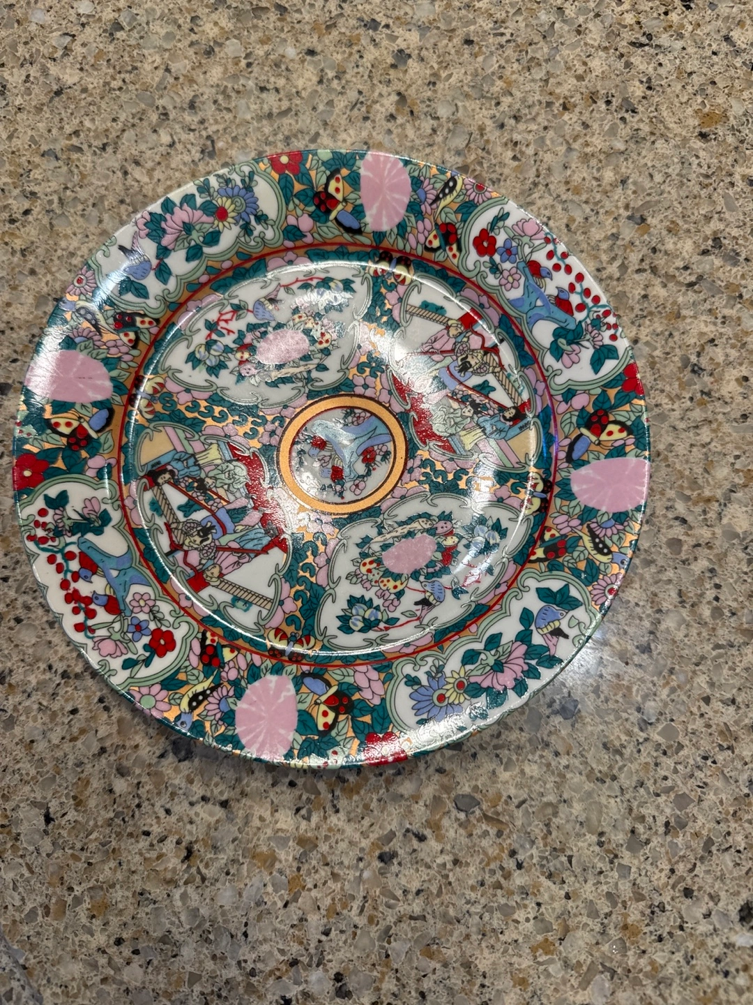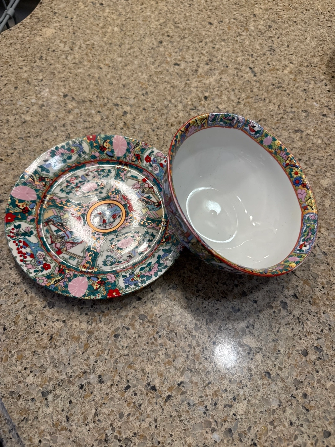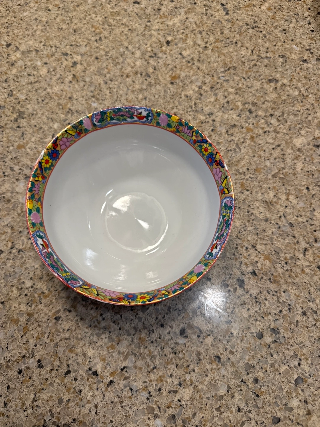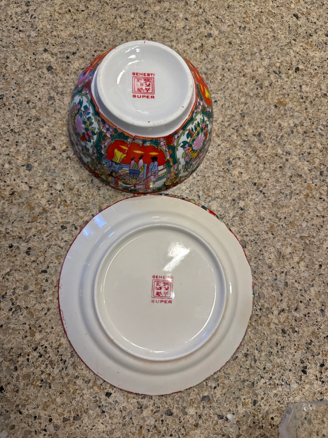 9616 Vintage Chinese bowl and plate set with floral pattern. Made in China.