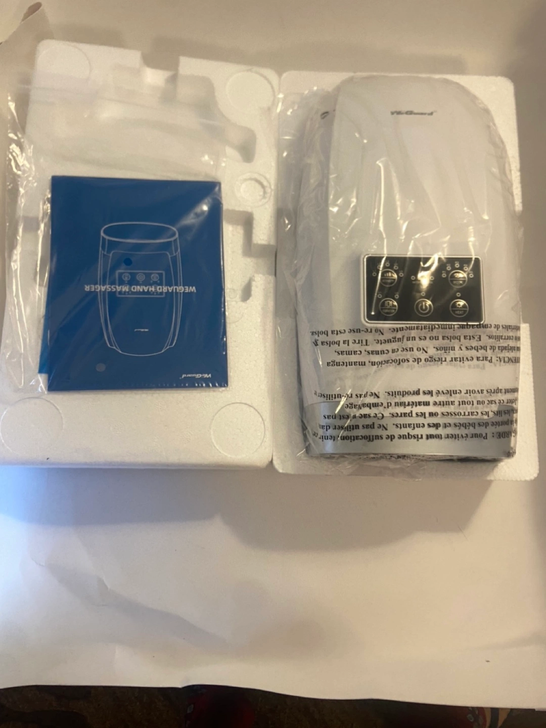 Hand massager with 5 modes, 3 intensity levels, 2 vibration settings, and a heat setting.
