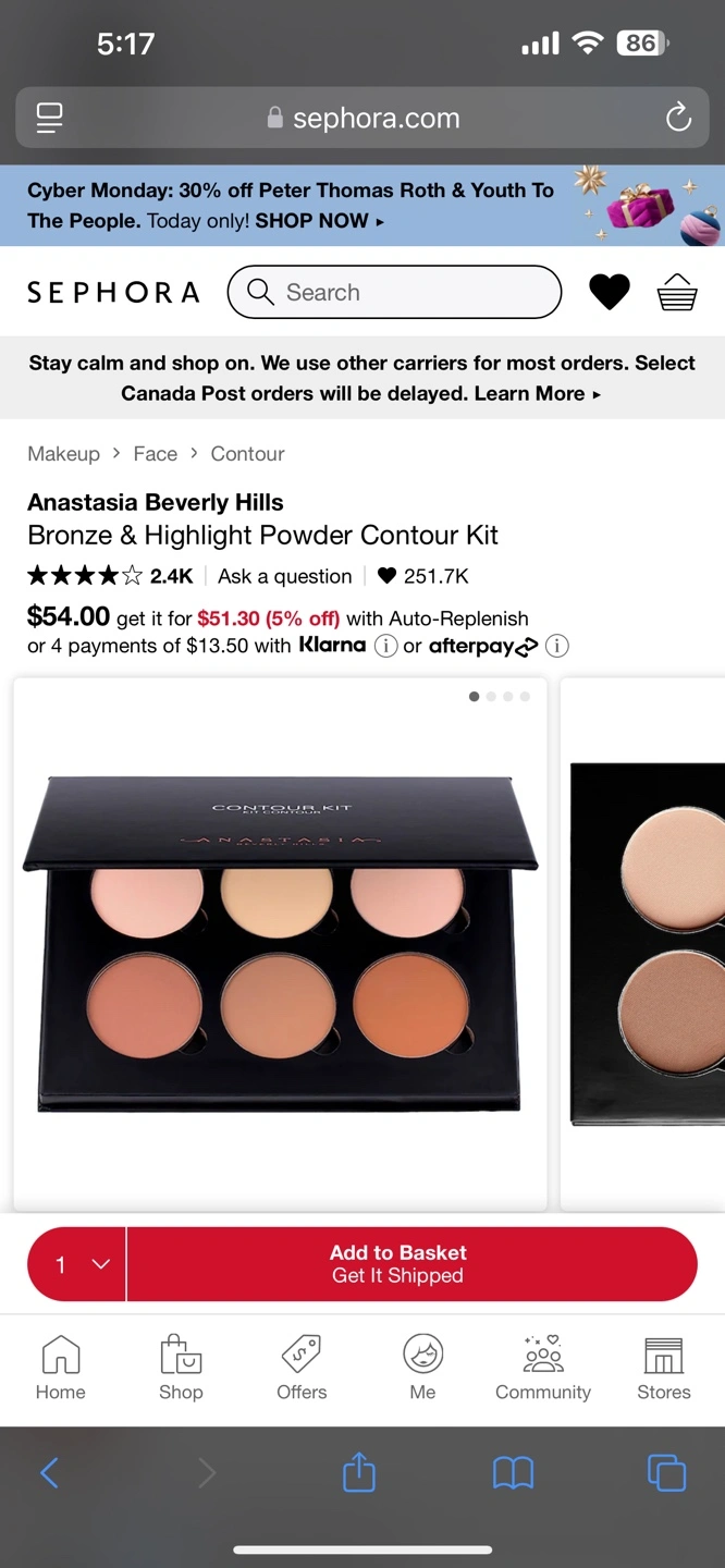 Six powder shades to contour, bronze, and highlight. Brand new but has some scratches on the outside of packaging from moving. Originally )$54.