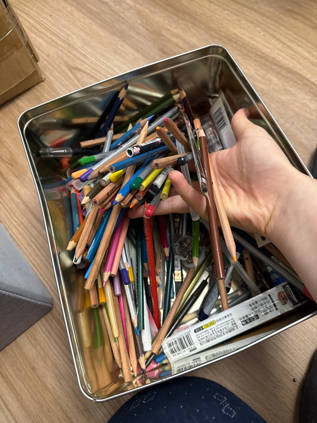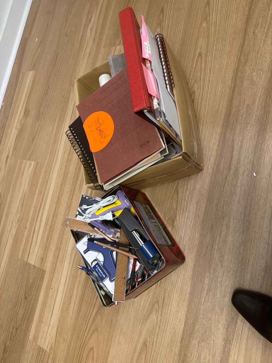 And you'll have to take everything else on the 3rd pic with you(the metal box have the color pencils and the other is trash I wanted gone