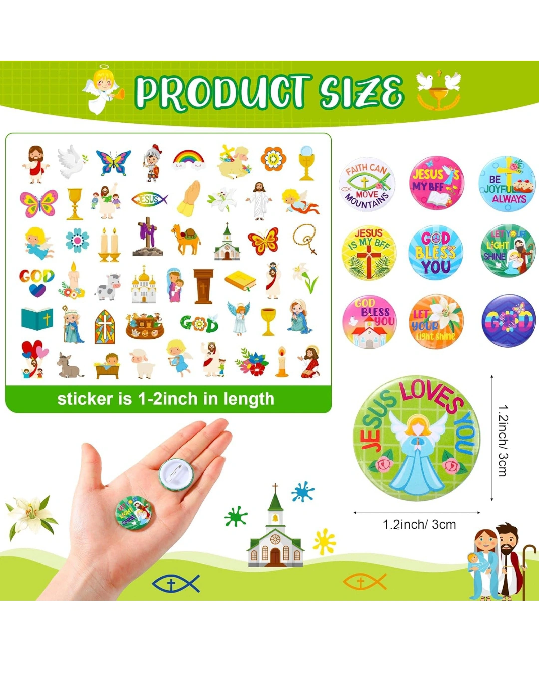Frienda 120 Pcs Christian Gifts Bulk Religious Slap Bracelets Bible Verse Stickers Jesus Loves You Button Pins Inspirational Prizes for Boys Girls Students Sunday School Party Favor Supplies(Stylish).