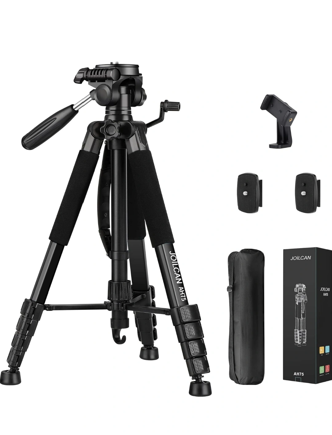 Tripod Camera Tripods, 74" Tripod for Camera Cell Phone Video Photography, Heavy Duty Tall Camera Stand Tripod, Professional Travel DSLR Tripods Compatible with Canon Nikon iPhone, Max Load 15 LB.