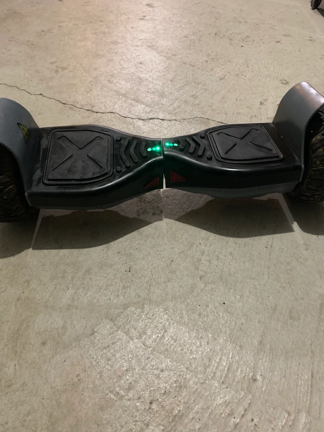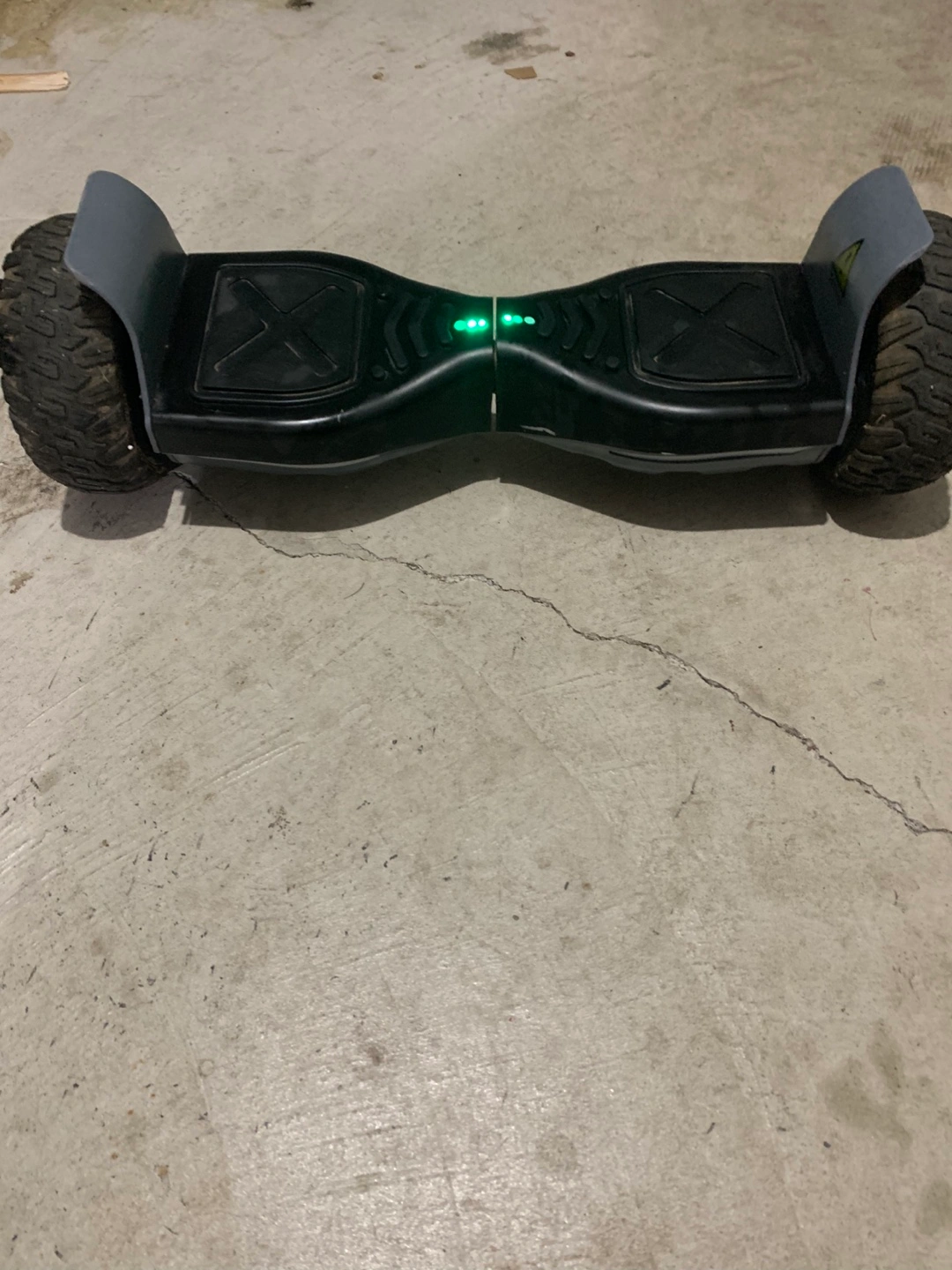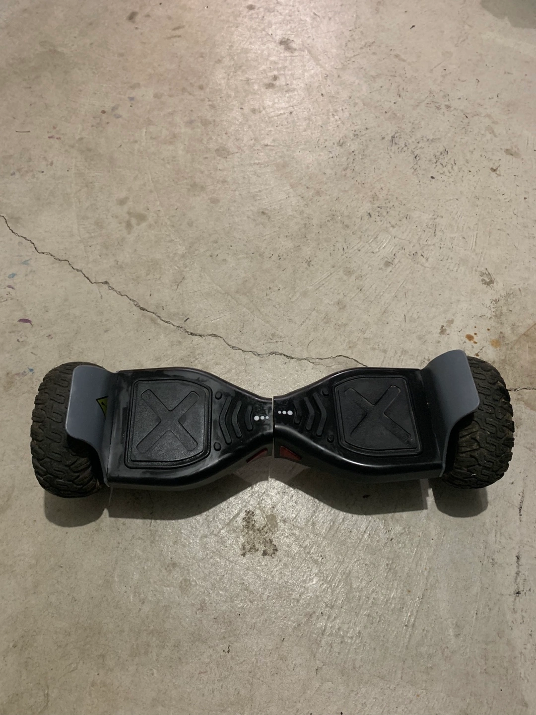 35All-terrain hoverboard with large tires. In great condition and working order. charger included. Bluetooth speaker built in Led lights