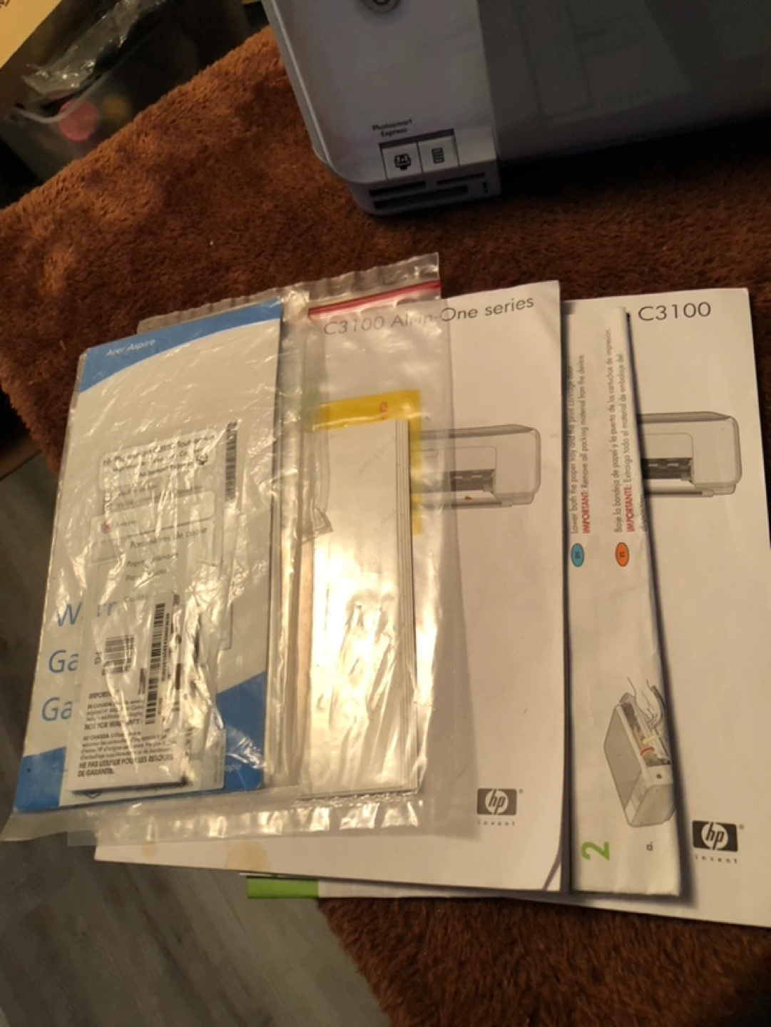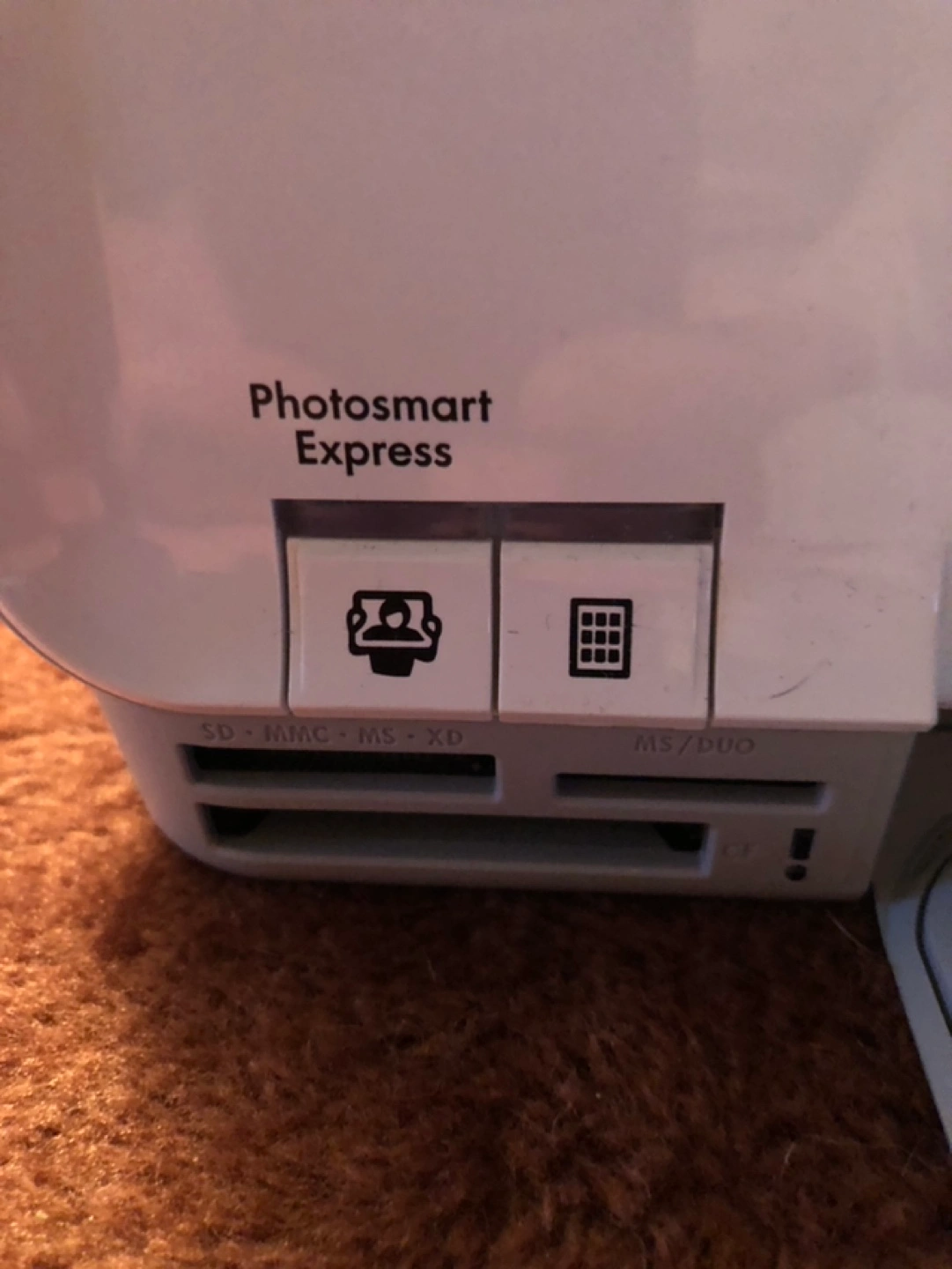 All-in-one printer, scanner and copier. Includes power cord and USB cable. Comes with SD card reader. Pls note that it is missing the CD to install, but you can easily get it off the internet under HP have all the drivers, etc