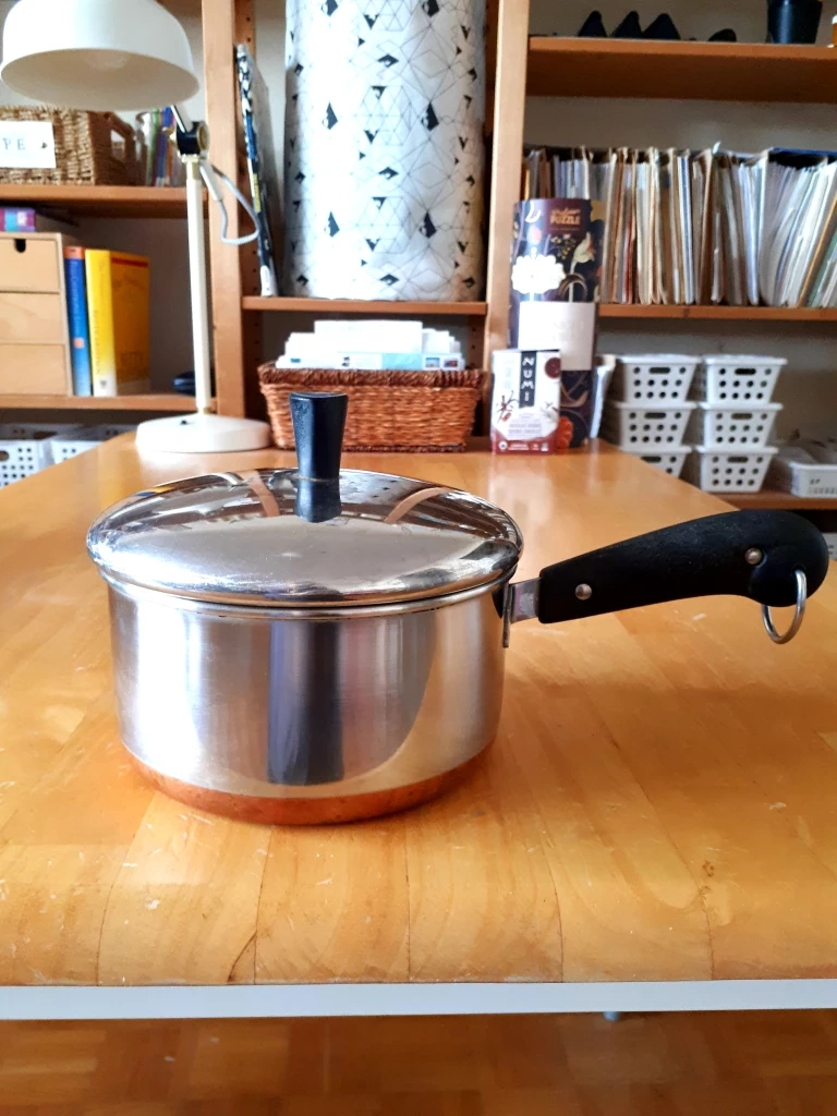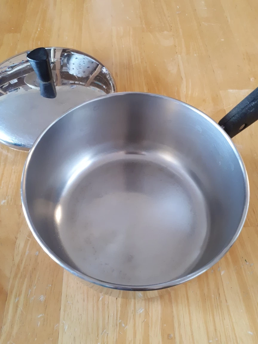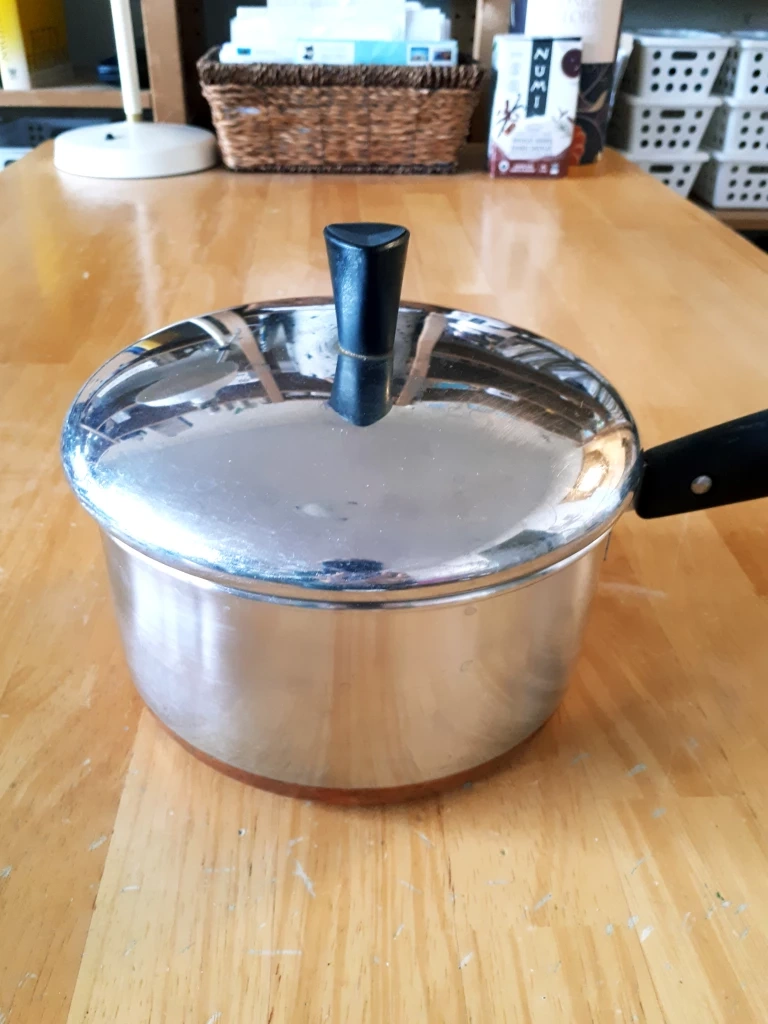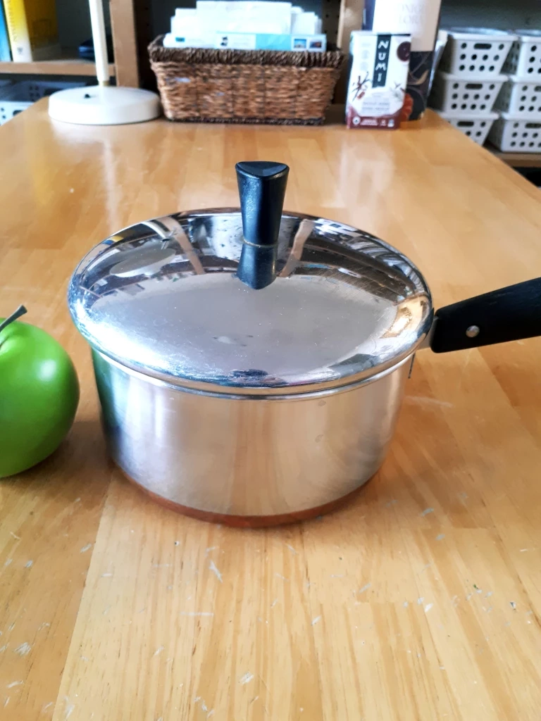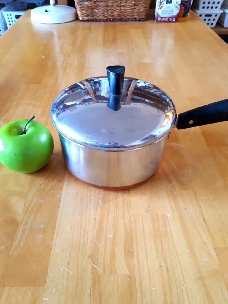 1000+Handy Medium size, one of those you always reach for: 1.5 Qt (approx 6 cups / 1.5 Litre) π NOTE: See pics for its cute knob! The pot is Revereware (see pics for bottom markings) and the lid is from a different line -- identical shape and size (perfect fit), just with a cuter knob design, which is also more comfortable to use! β’ In excellent vintage condition. π See all 10 photos (brand markings, inside, etc.). Large apple for scale. π I also have the little 1 Qt size -- See my other posts!