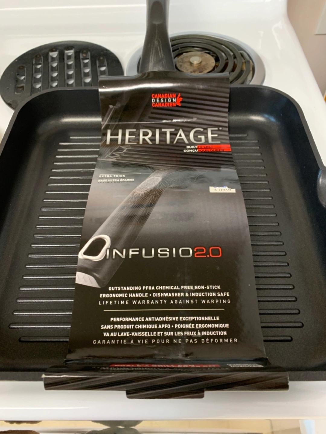 Extra thick cast aluminum base. Reinforced non-stick interior. Easy handling ergonomic handle. Dishwasher and induction safe. Canadian built.