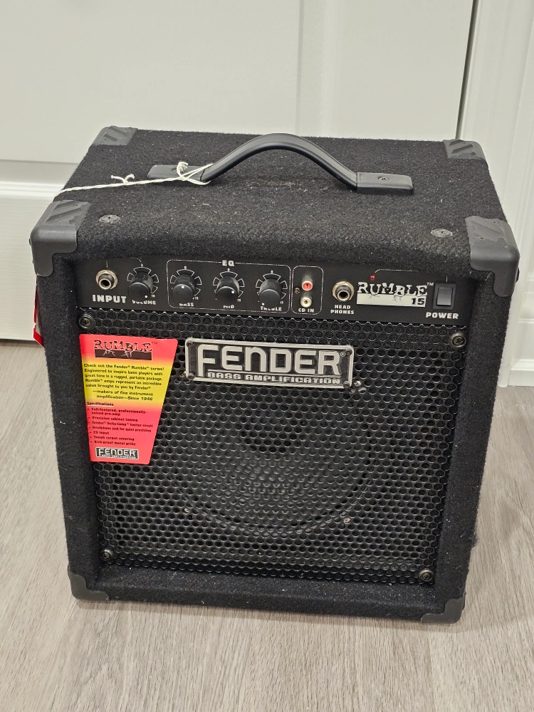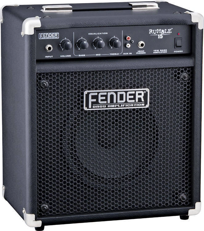 Small black box. Big bass sound. Thats what you get from the baby of the family, the Rumble 15, swaddled in tough black vinyl and rattling the crib with 15 watts of strong, clear Fender bass sound through an 8 Fender Special Design Speaker. Great sound and easy portability at an unbeatable value. Uh-ohyou woke up the baby!