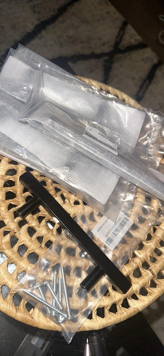 Matte black cabinet handles. 4-inch centre-to-centre. Comes with mounting screws.