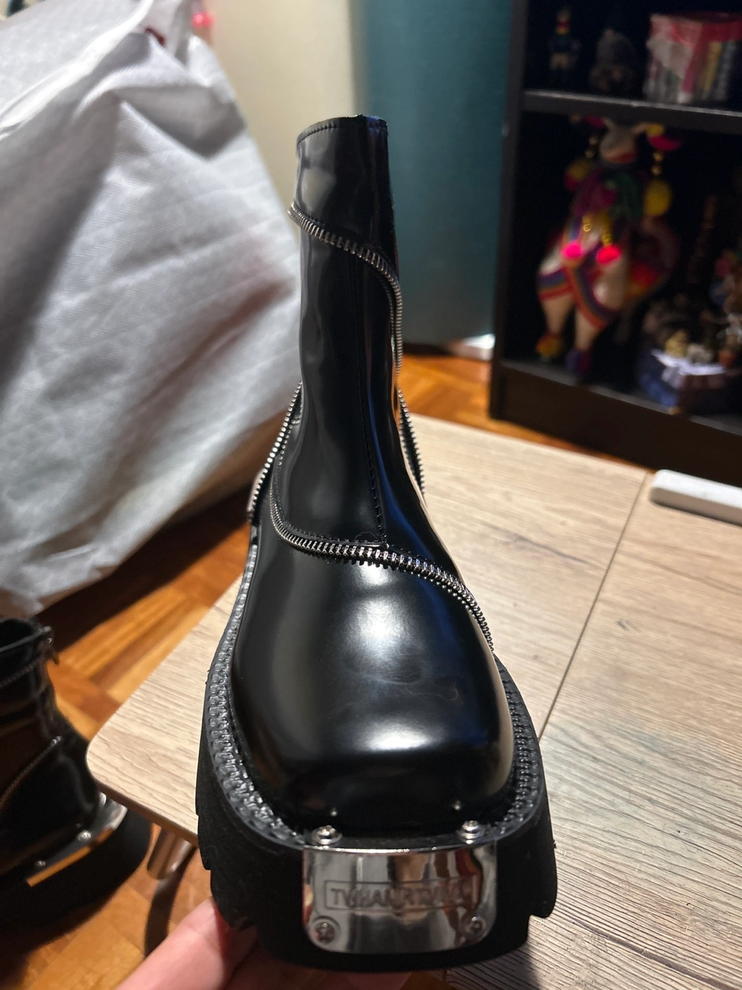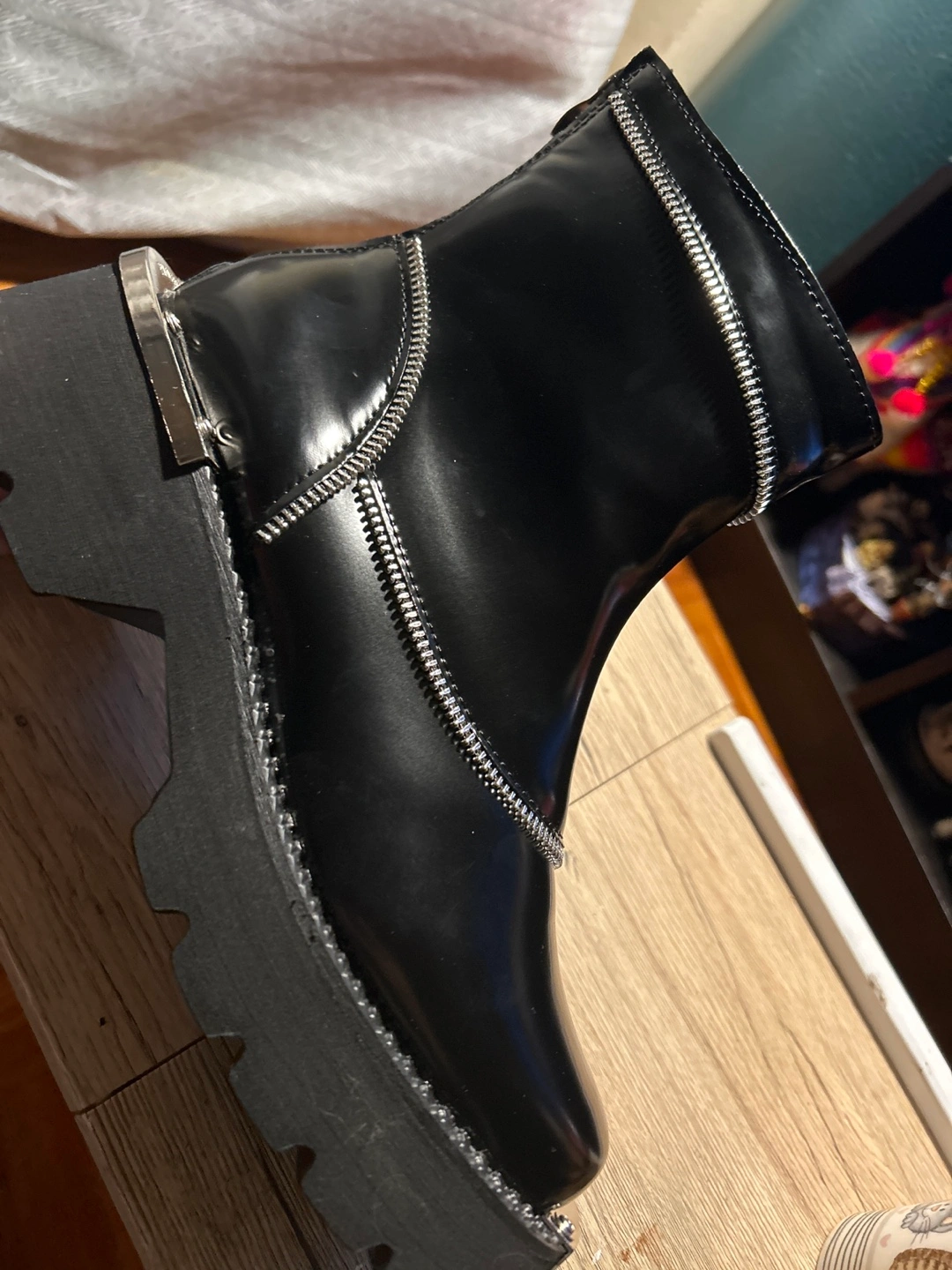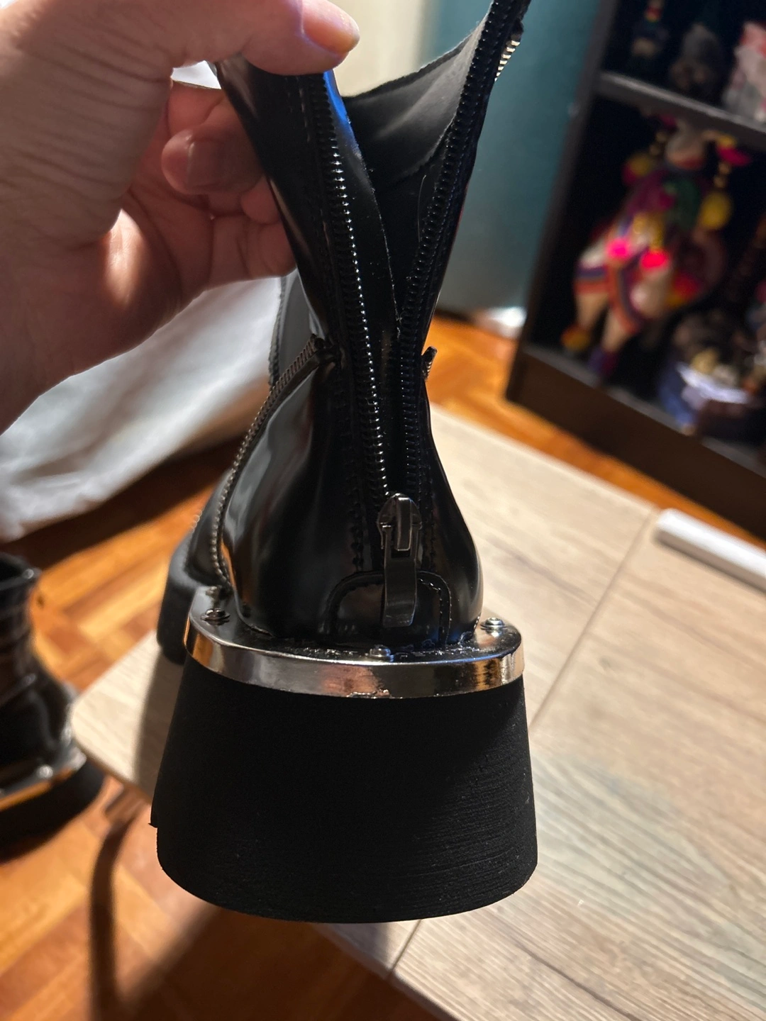 Black leather platform boots with zipper detail. Size 9 that I didn’t use because I’m size 6 and this are huge for me