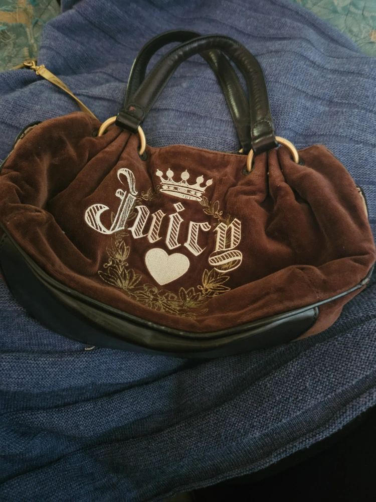Y2K vintage Brown velvet handbag with gold accents. Has a small mirror charm and a gold pocket inside.