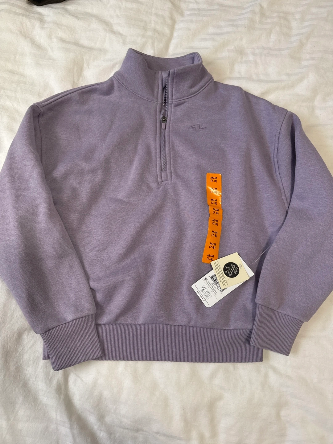 96Long sleeve quarter zip fleece, purple, size 7-8