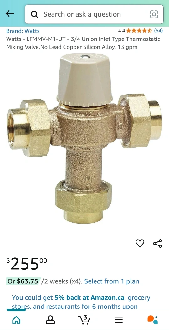 .Watts - LFMMV-M1-UT - 3/4 Union Inlet Type Thermostatic Mixing Valve,No Lead Copper Silicon Alloy, 13 gpm