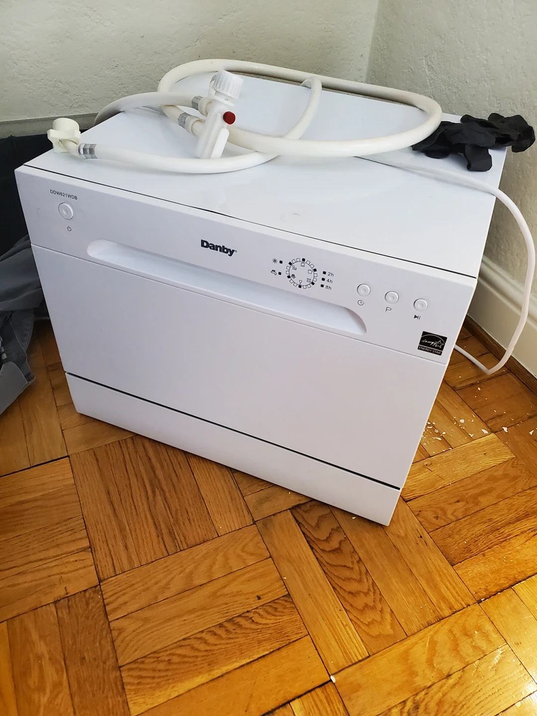 Danby portable dishwasher, only had it for 1 year, works wonders if you're a new mom or have a small apartment and don't have time to wash bottles or dishes. Including the rack, which I've used to prop the dishwasher onto.