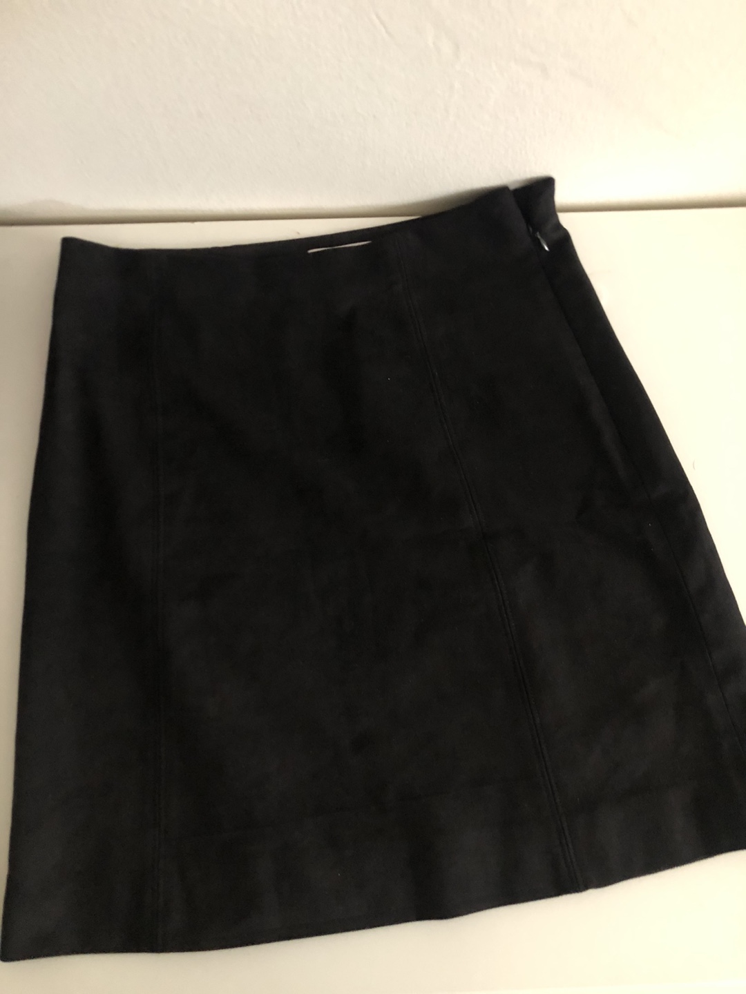Never worn black faux suede (vegan) mini skirt with a zipper closure. Size 4.