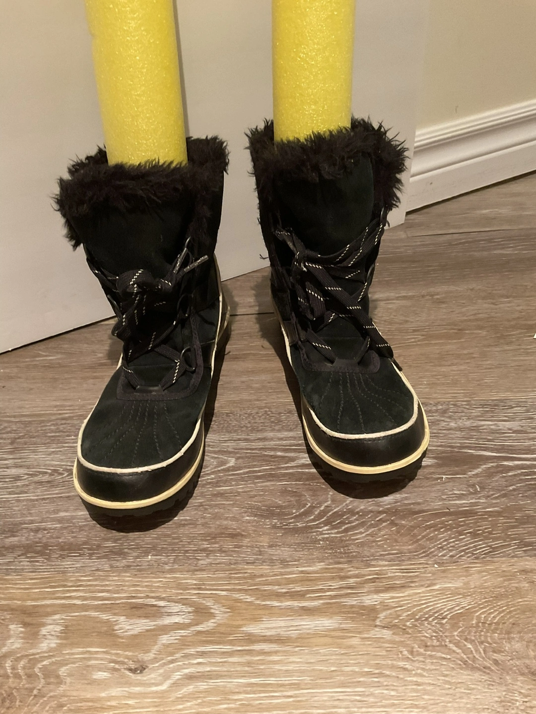 Black suede boots with fur lining and a waterproof outer layer. Lace-up style with a comfortable fit. Excellent condition.