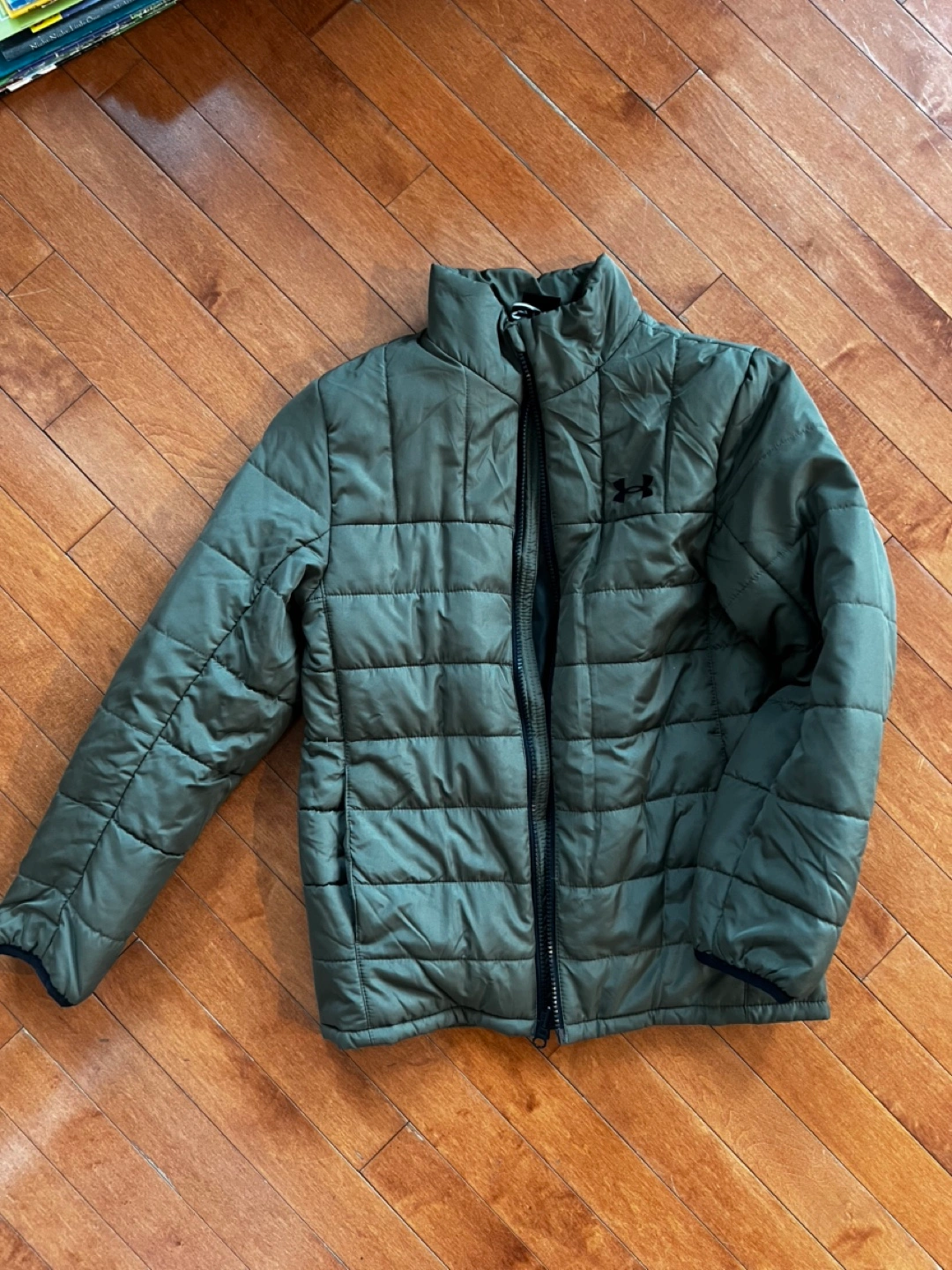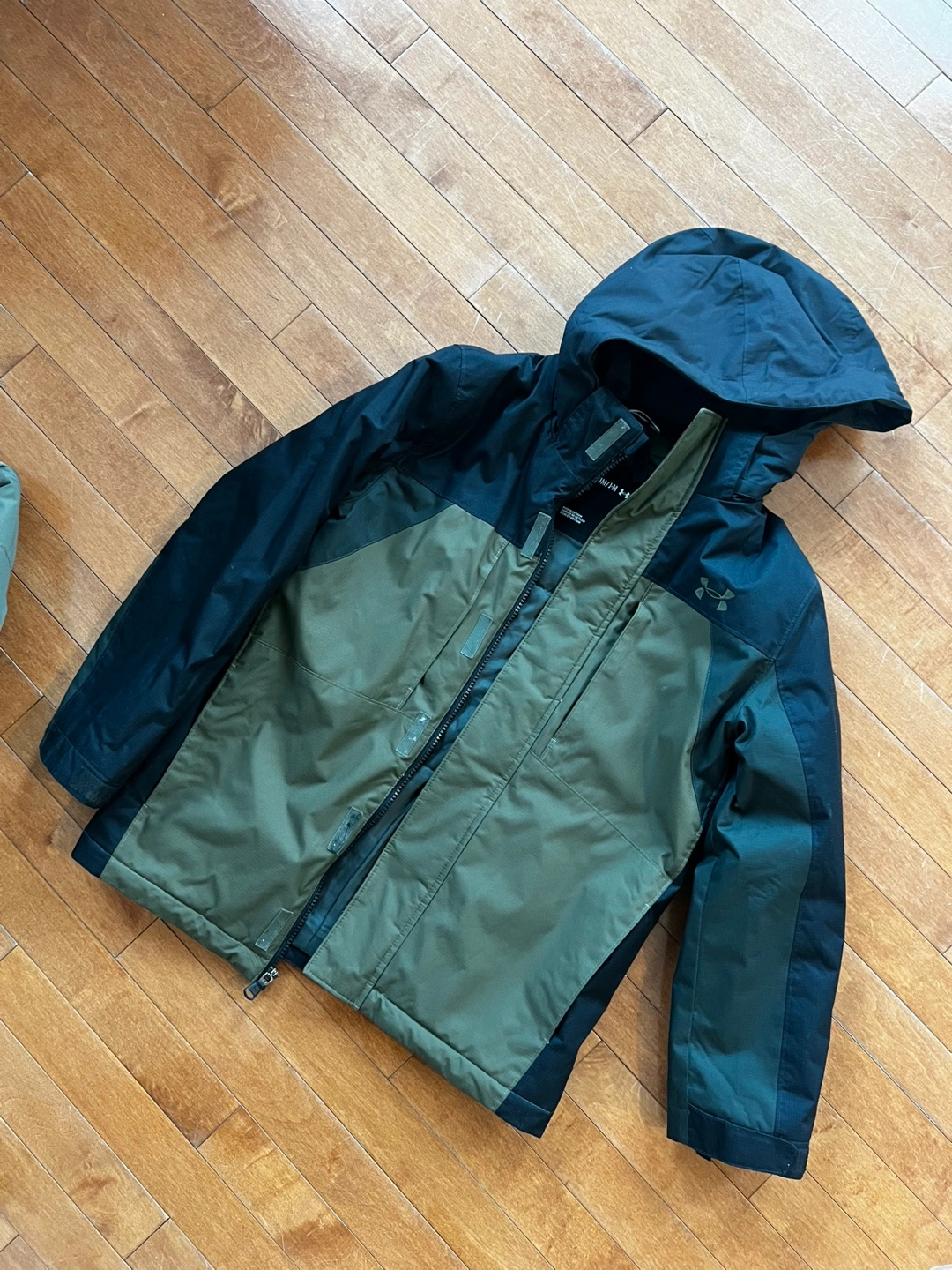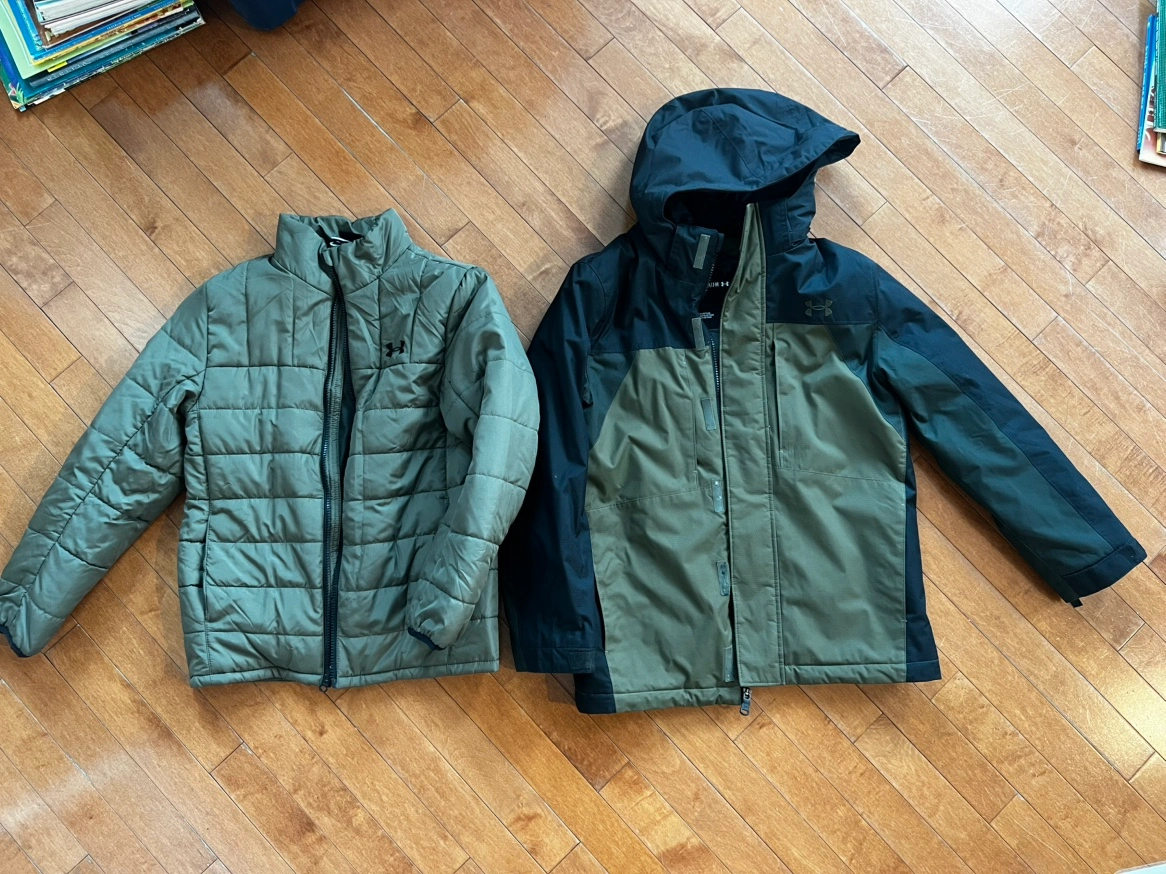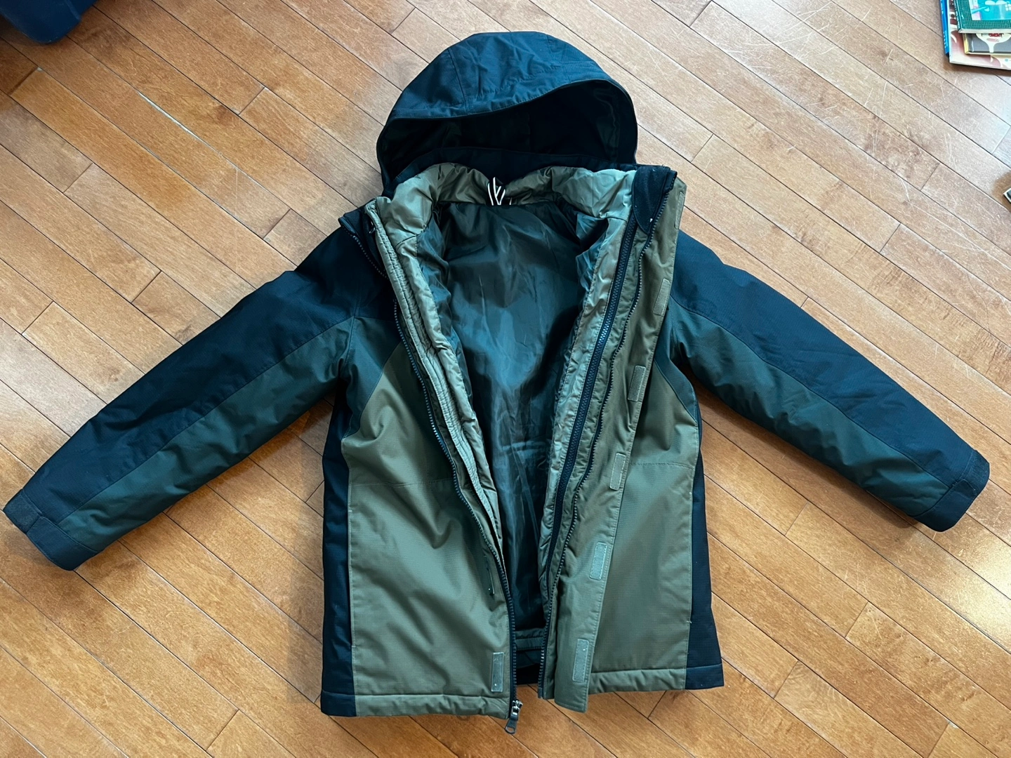 Green and black winter jacket with a removable inner liner. Can be worn separately or together as one. Size YMD/JM. Pick up only.