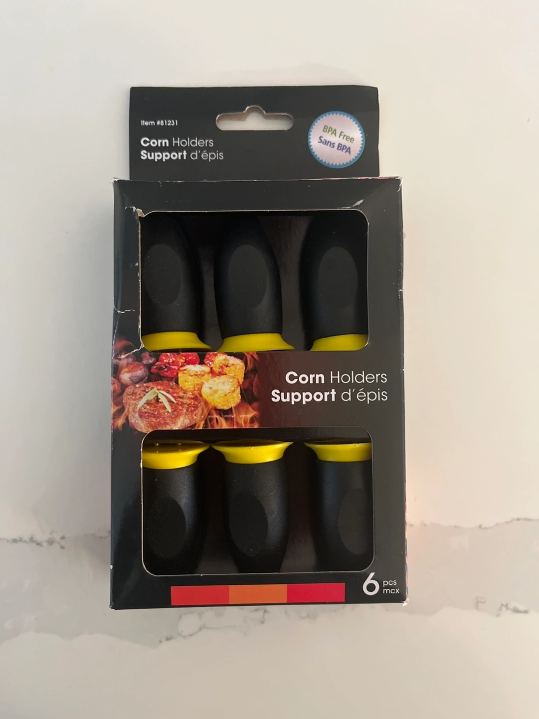 542Set of 6 corn holders, black with yellow accents. BPA free.