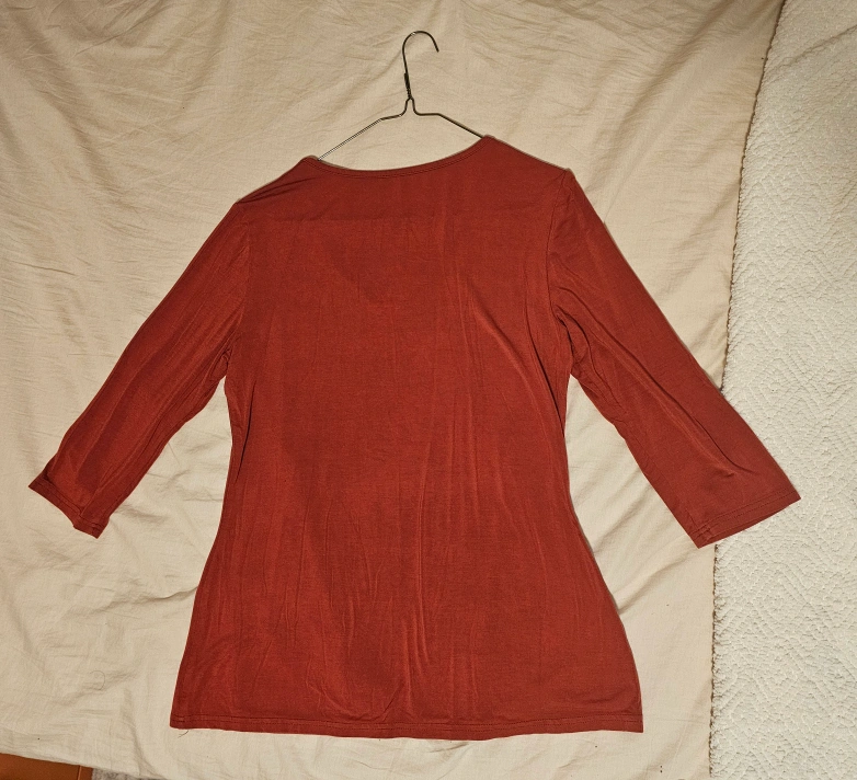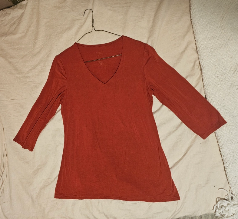 Red 3/4 sleeve v-neck top. Soft and comfortable.