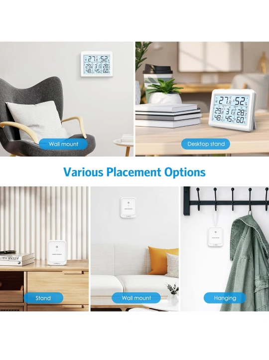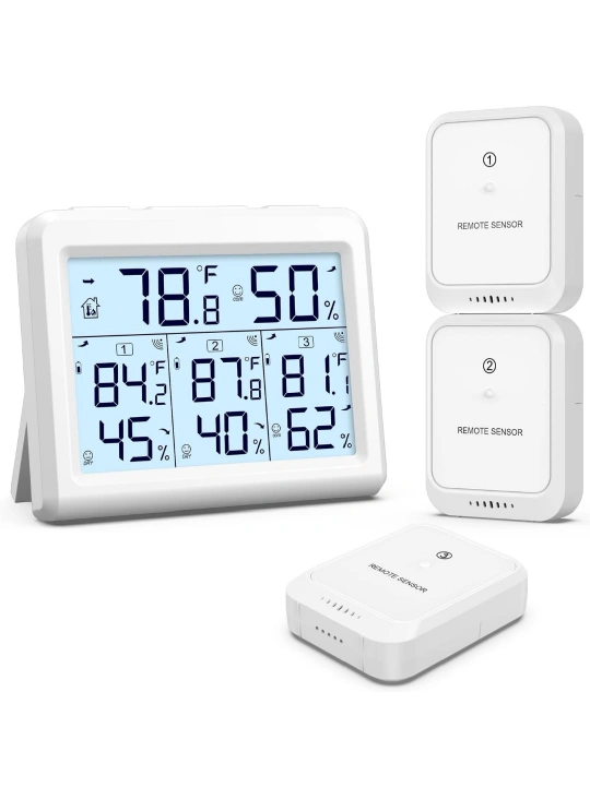 AMIR Upgraded Digital Hygrometer Indoor Outdoor Thermometer, Wireless Weather Stations with 3 Sensors, 328ft/100m Range, Digital Hygrometer Thermometer with Max/Min Record, Backlight, for Bedroom.
