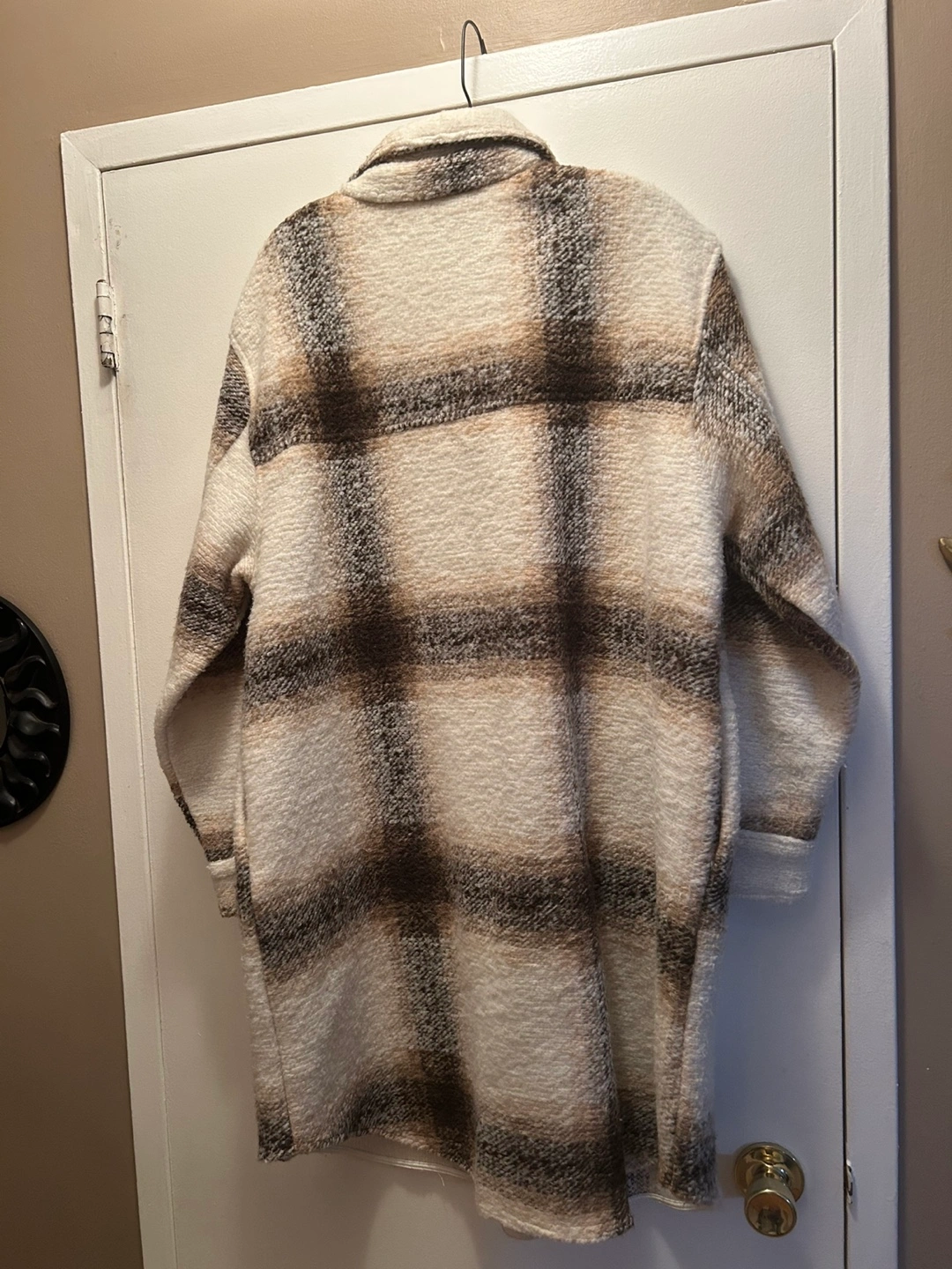 Cream and Brown Plaid Oversized Shirt Jacket