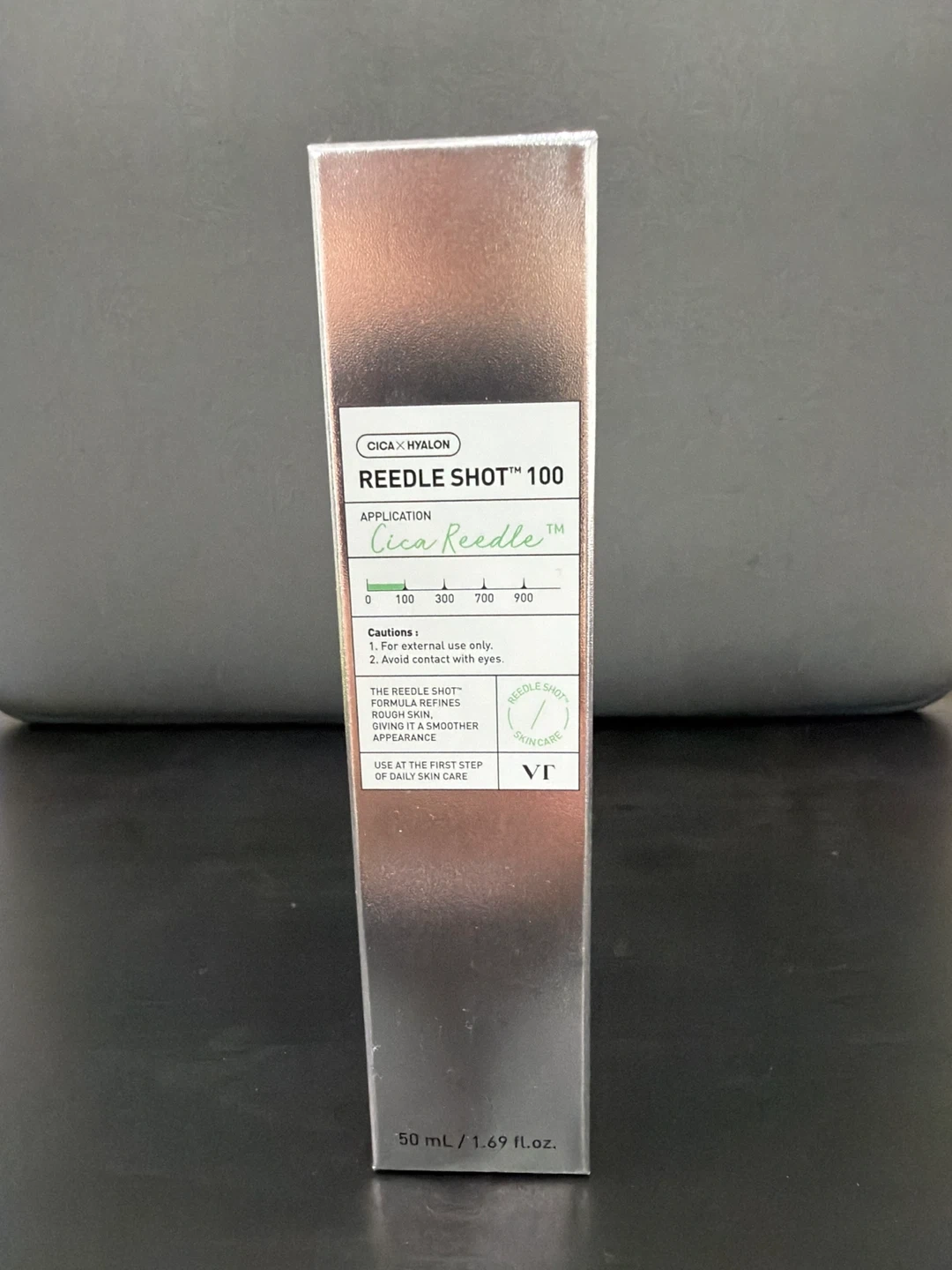Sealed VT CICA HYALON REEDLE SHOT 100 serum. Comes in a 50ml / 1.69 fl.oz. bottle. Its formula refines skin texture for a smoother appearance. Use it as the first step of your daily skincare routine.