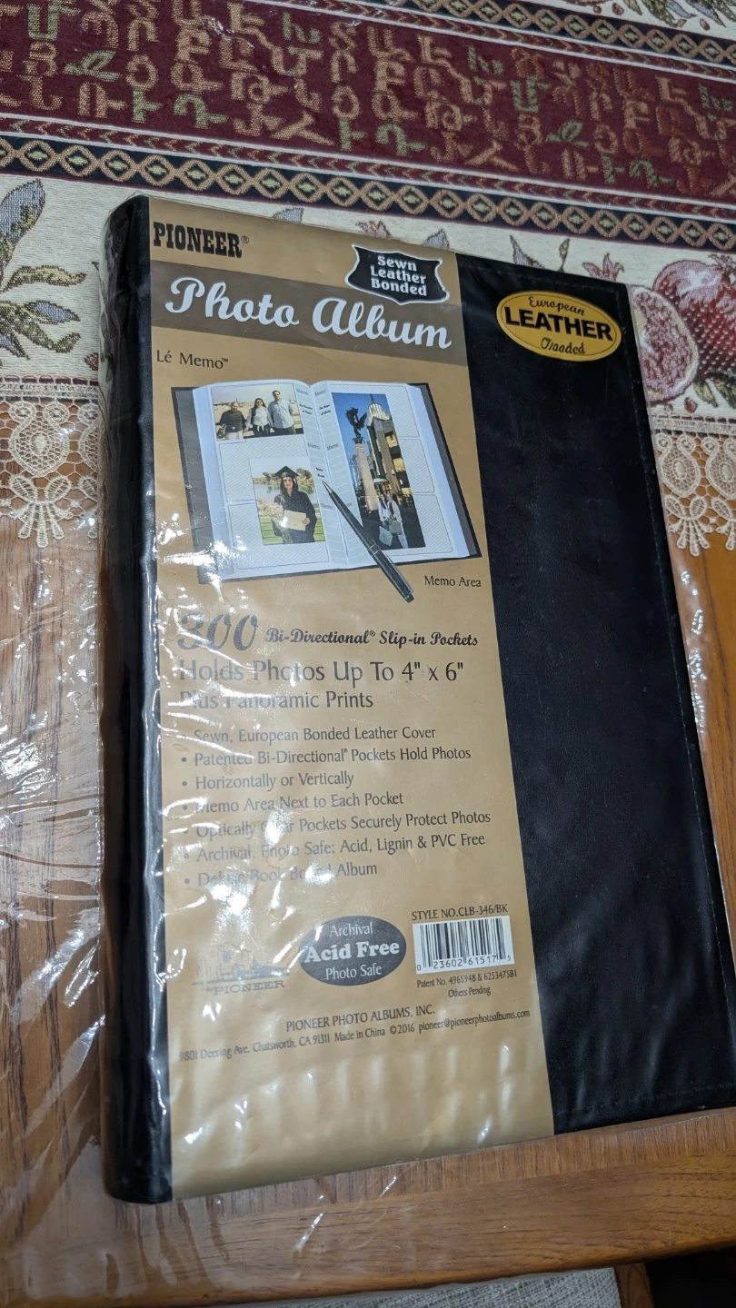 This Pioneer photo album holds up to 200 bi-directional slip-in pockets. It's archival safe, acid, lignin & PVC free. The European bonded leather cover is durable. Album pages have memo area next to each pocket. Pick up in Scarborough; cash only.