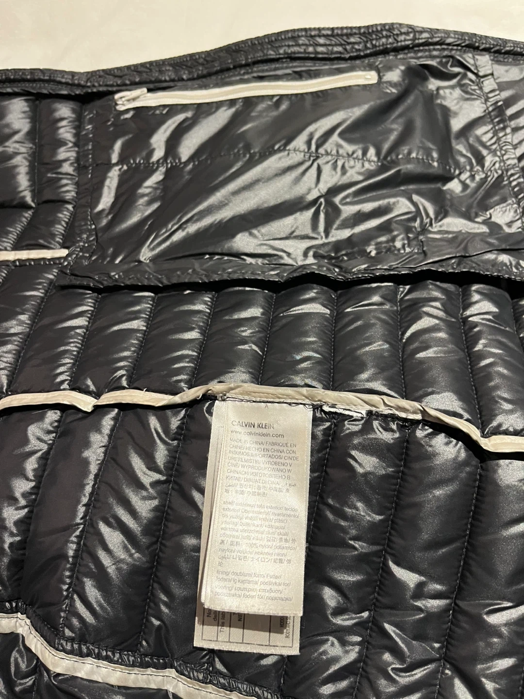 Calvin Klein packable puffer coat in black. Features premium down fill for superior warmth. Protects down to -13°C. It's a lightweight and compressible outerwear piece. Size L and in great condition!
