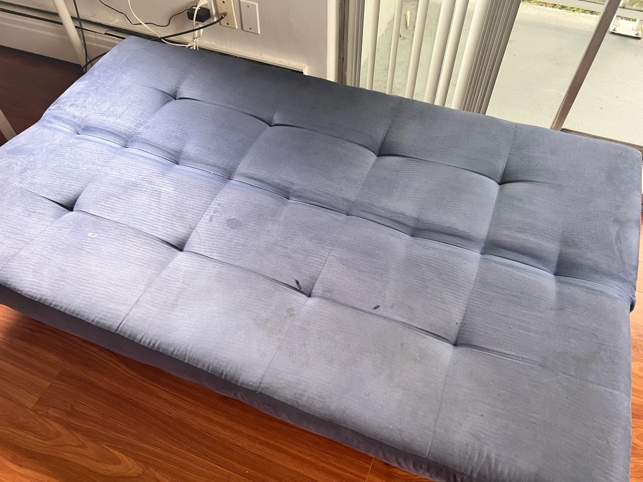 Futon couch that folds out into twin bed. It’s in great condition with only a couple of small spots from nail polish.