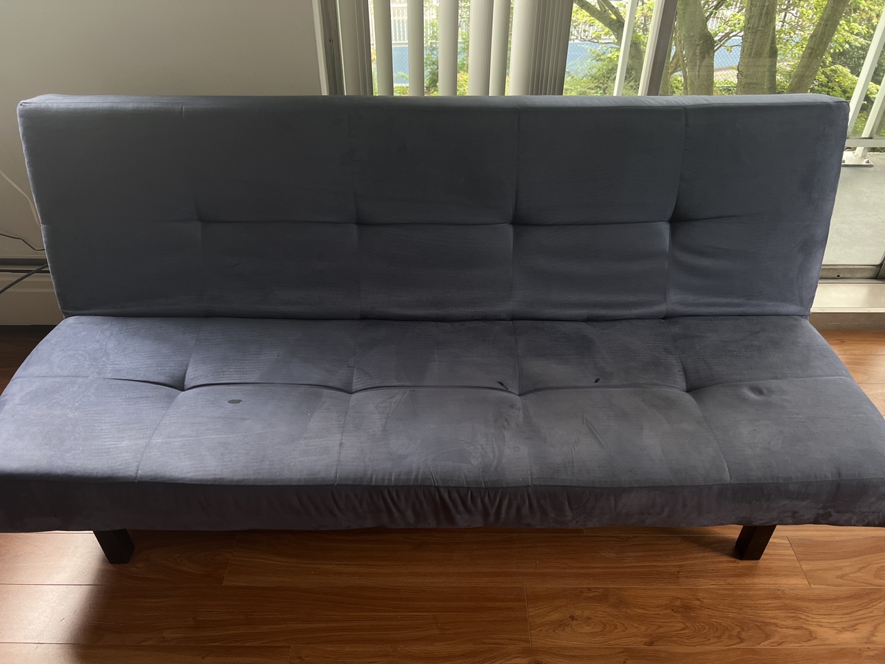 Futon couch that folds out into twin bed. It’s in great condition with only a couple of small spots from nail polish.